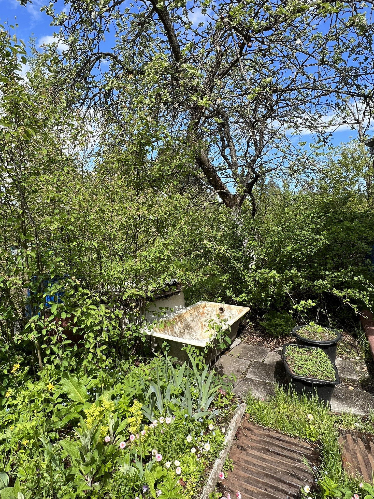 На участке поставлен новый парник (2022г) размерами 3*6. Место под парником отсыпано, земля очень хорошая, имеется самодельный мини-парник.