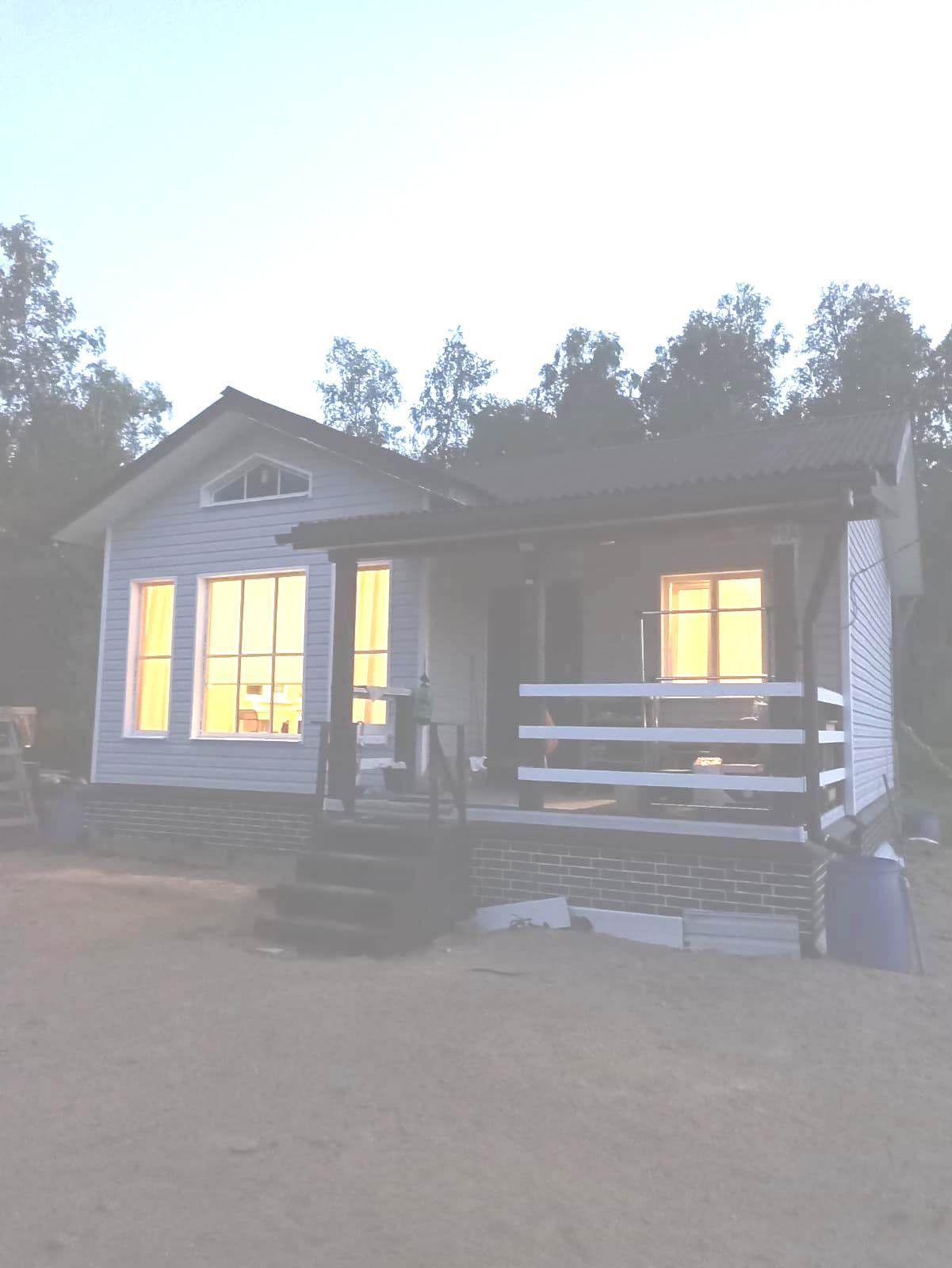 Участок(кадастровый номер 47:07:1803001:24, для ведения садоводства) с домом(назначение: жилой) расположены в СНТ Строитель массива Борисова Грива Всеволожского района Лен.области. Въезд в СНТ через шлагбаум, охрана, освещение всей территории.Участок разработан, соседи только с одной стороны, с двух сторон участок граничит с лесом.Одноэтажный каркасный дом 7,5х6,5 метров строили для себя по проекту: металлические сваи, нижний венец брус 200 мм, утеплитель Роквул Скандик: стены 150 мм, пол 200 мм., на пол уложены плиты ЦСП и ламинат, внешние стены обшиты теплоизоляционными плитами Белтермо  20мм и облицованы сайдингом, крыша ондулин, окна стеклопакеты, внутренние стены вагонка, санузел панели ПВХ,  летний централизованный водопровод плюс дополнительный бак на 5 кубов с насосной станцией, канализация: автономная электрическая биостанцич Биодевайс объёмом на 5 человек , электричество 4 кВт.Комнаты 7+8 кв.м., кухня-гостиная 17 кв.м. , холл 6 кв.м., терраса 9 кв.м.Один собственник. Подходит под ипотеку.