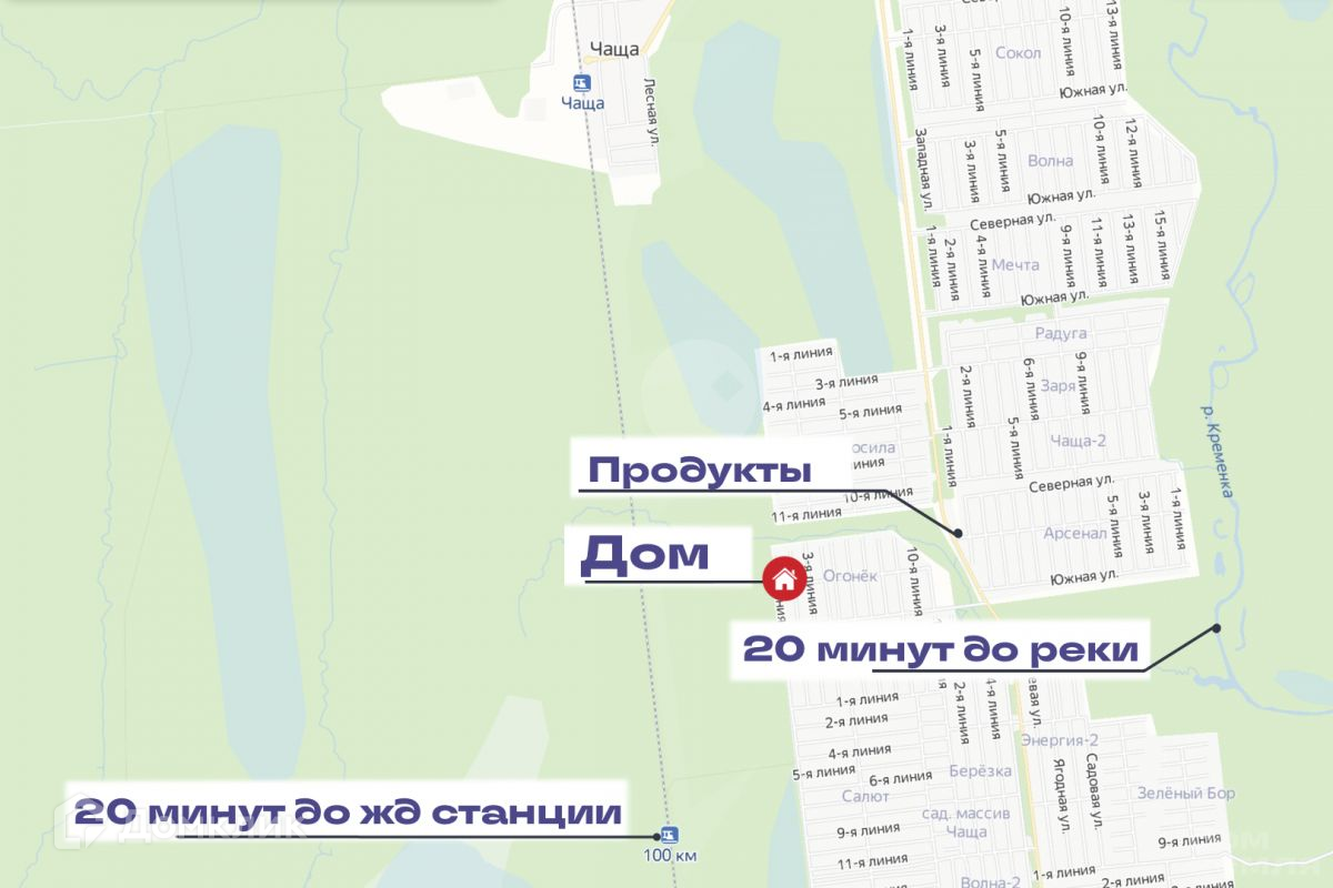Расположен дом в массиве Чаща, СНТ Огонек. От СПб 100 км на автомобиле, либо на электричке с Витебского вокзала до ж/д станции «100 км». Садоводческий массив расположен среди леса. Грибные и ягодные места рядом. В 10 минутах езды на а/м находится озеро у поселка Новинка с кристально чистой водой. Экологически чистое и тихое место. Всё есть для полноценной жизни, здорового сна и отдыха на свежем воздухе!