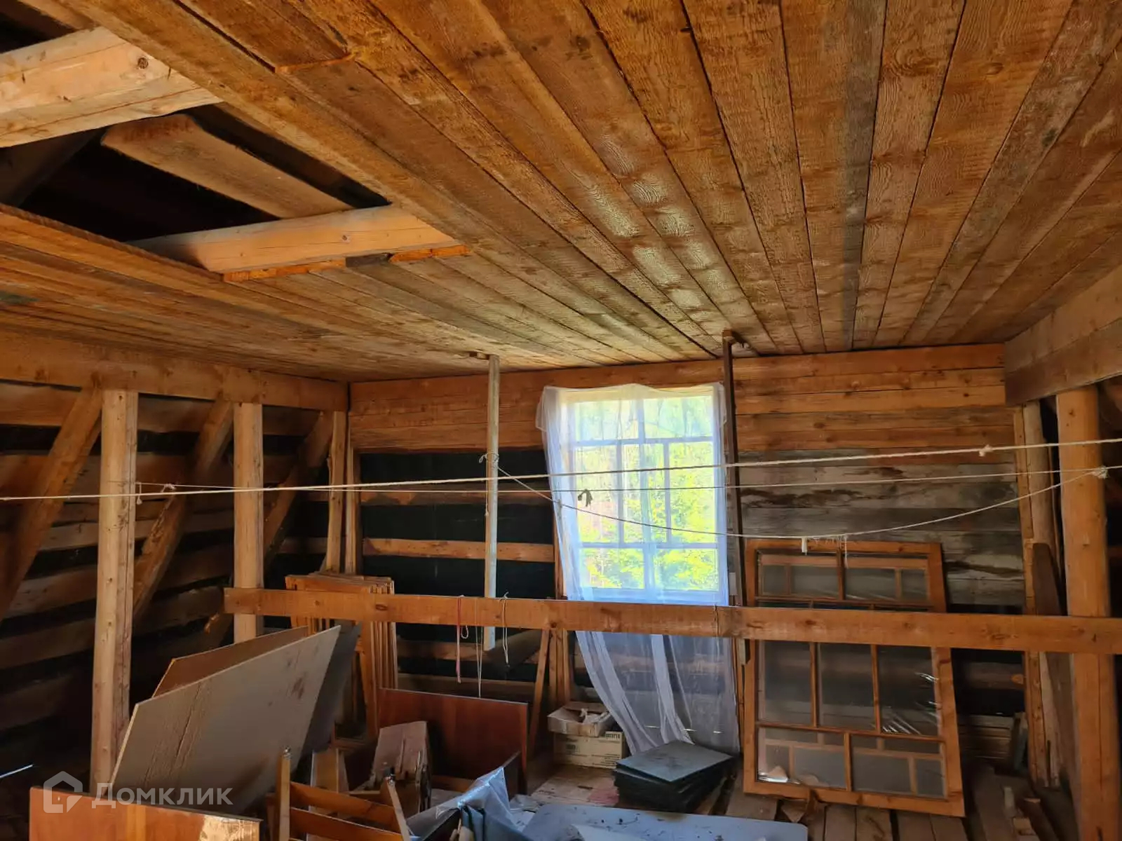 Участок земельный ровный, сухой. В саду растут яблони, слива венгерка желтая, жимолость. На участке расположен жилой дом 65,5м2, 1987 года постройки: 1987. Материалы стен: полубрус 150мм. Этажность: 2 этажа. На первом этаже – веранда (11,7 м2), комната – гостиная/ кухня (21,6 м2) с фундаментом под печь, лестница на второй этаж. Высота потолка - 2,5м. Второй этаж – каркас из брёвен: комната-мансарда 24,8 кв.м. Фундамент: блочный. Крыша: шифер. Окна: деревянные. Полы: черновой пол, доска 50мм. Внешняя отделка: вагонка. Веранда летняя. Дом большой, крепкий. На участке есть небольшой сарай.