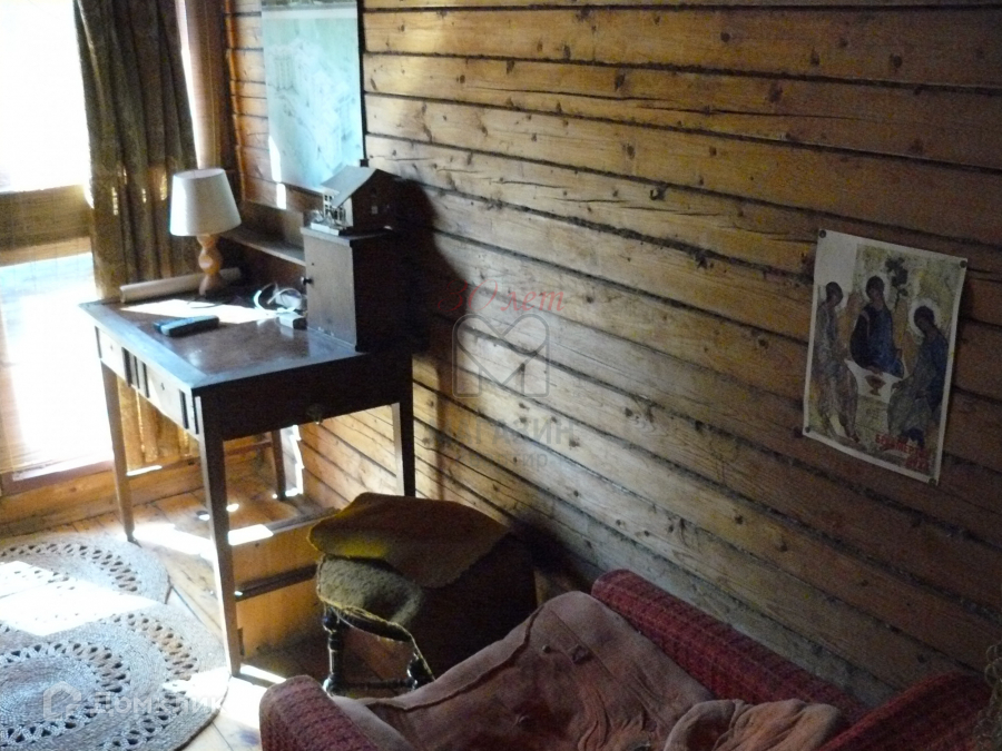 В садоводстве Театральный на 12 сотках продается  2-х этажная дача из бруса  оригинальной планировки на блочном фундаменте, облицована сайдингом. В доме имеется веранда, гостиная с камином, кухня, прихожая, 2 спальни и балкон, отапливается печью, отделка деревом. На участке сад с плодовыми деревьями и кустами, скважина, сарай и туалет, красивые ели. Рядом грибной лес, пожарный водоем, автобусная остановка, удобное сообщение электропоездом с Балтийского вокзала до станции Дивенская. В шаговой доступности водоем для купания.Собственность