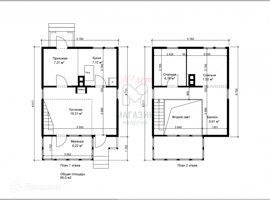 Общая площадь 65 м2