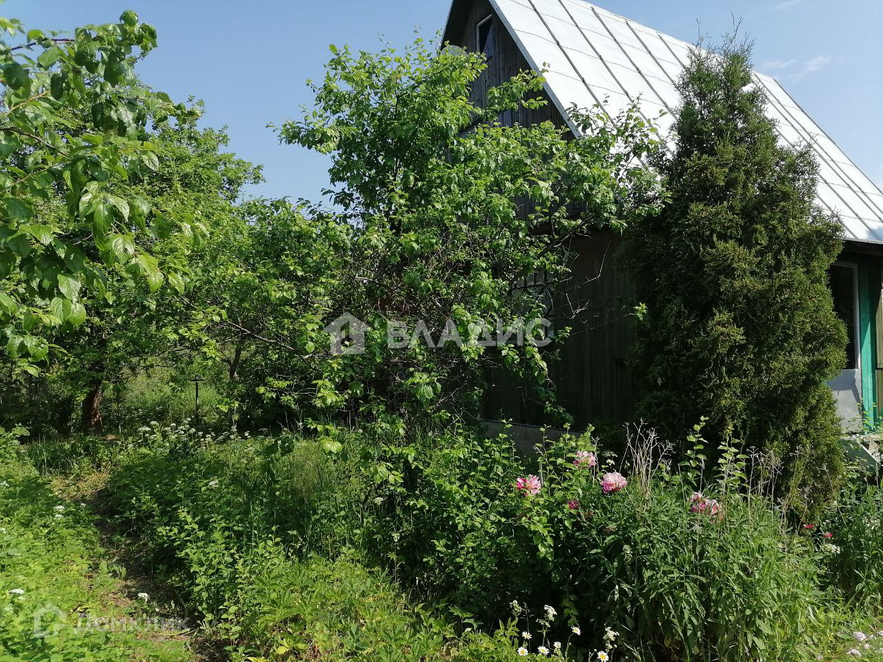 Растут плодовые деревья : яблони, сливы, вишни, кусты (смородины, крыжовника, малины)