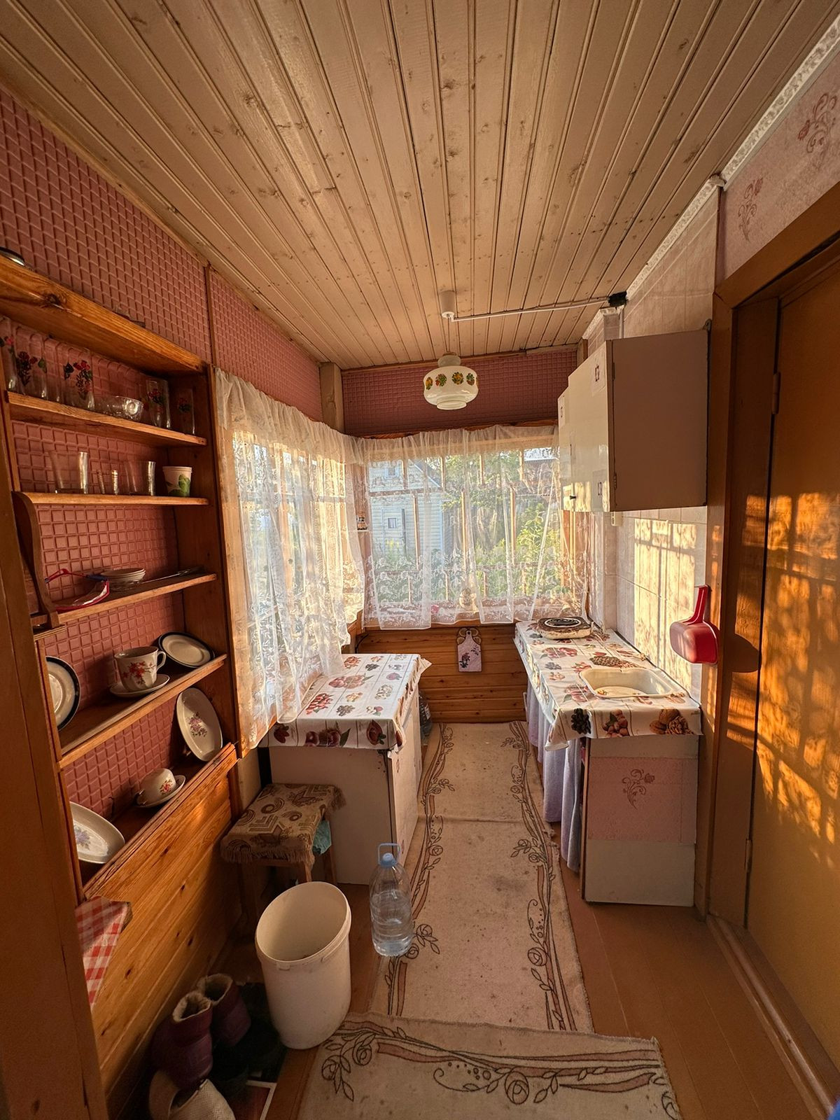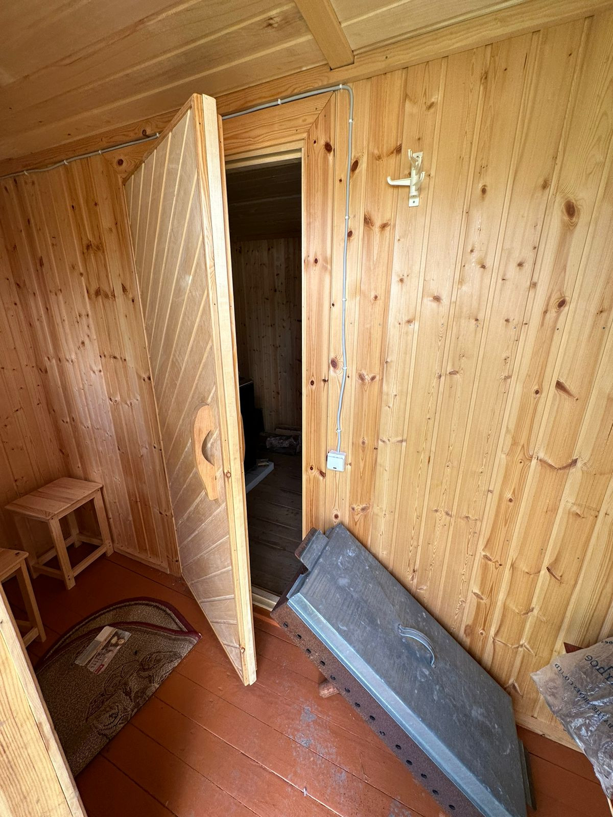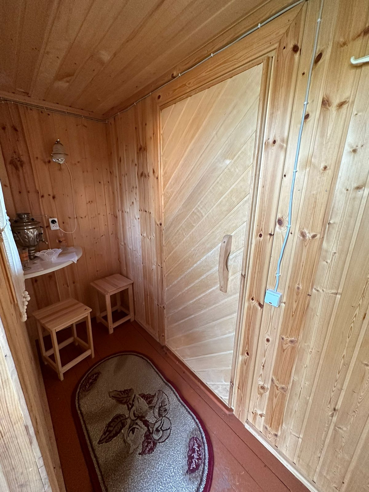 Баня- новая 6*4 из бруса, крыша ондулин. Установлена на сваях. В бане есть: парилка, моечное отделение, с подачей воды сверху, и с/узел. А также с отдельным входом -помещение для хранения хоз.инвентаря.