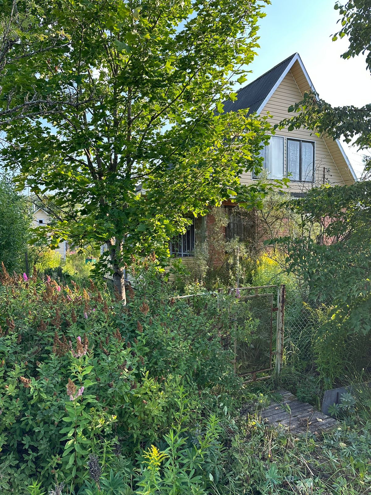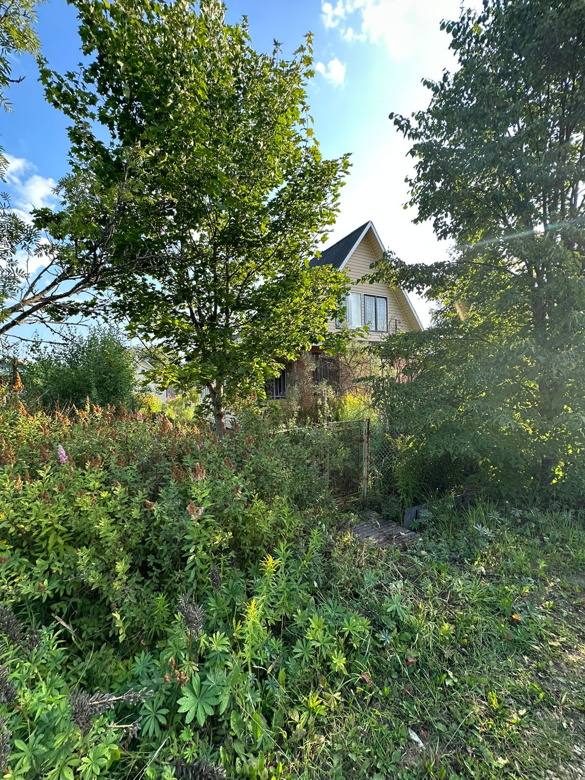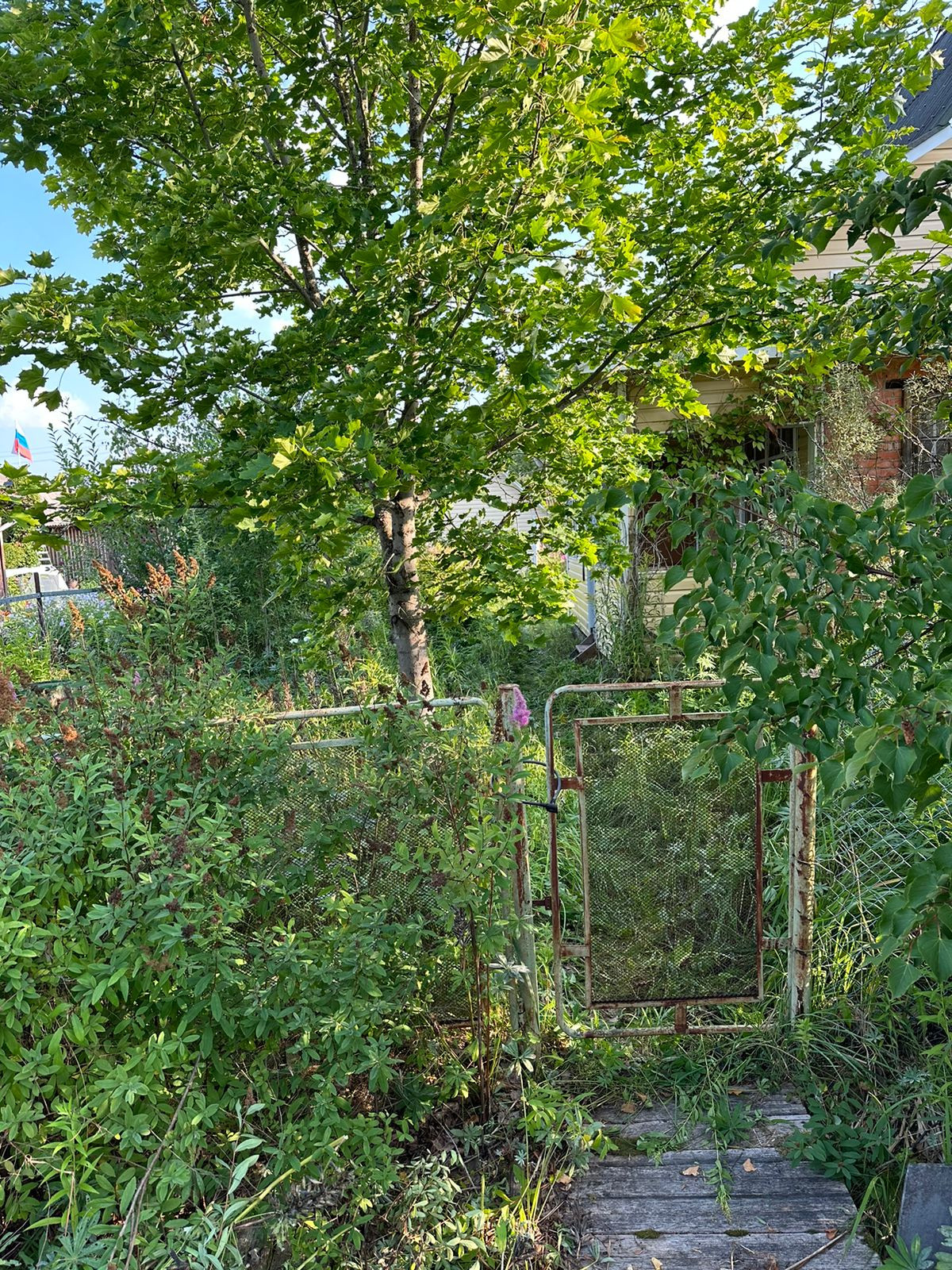 Участок 6 соток- ровный сухой.  Из плодовых деревьев и кустарников растут  3 яблони, крыжовник, смородина черная и красная. А также клен и туя.