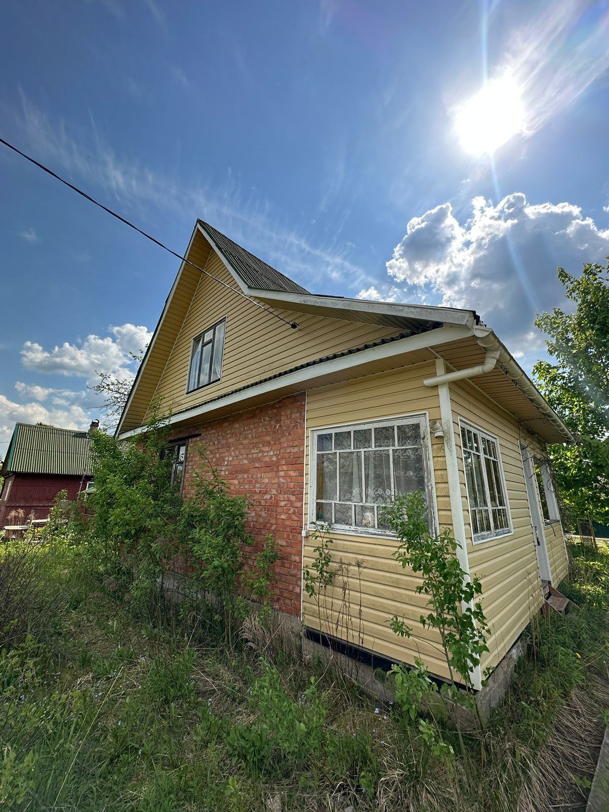 Дом 2-х этажный. Дом построен на ленточном фундаменте. Внизу оборудованный погреб. 1-ый этаж выложен из кирпича. 2-й этаж из бруса. Также есть чердак. Второй этаж и чердак обшиты сайдингом. Крыша из шифера.