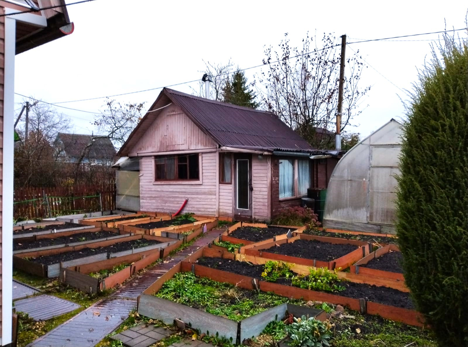 Из посадок: яблони, сливы, вишни, смородина, крыжовник. Оборудованы грядки.