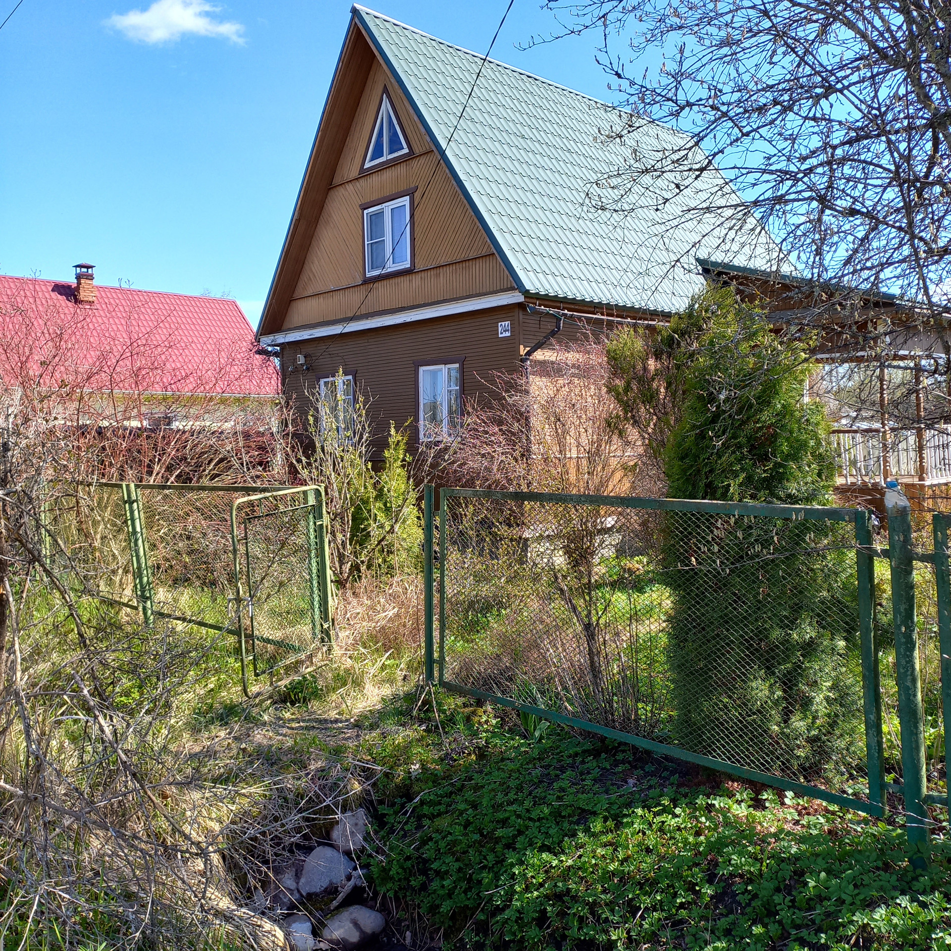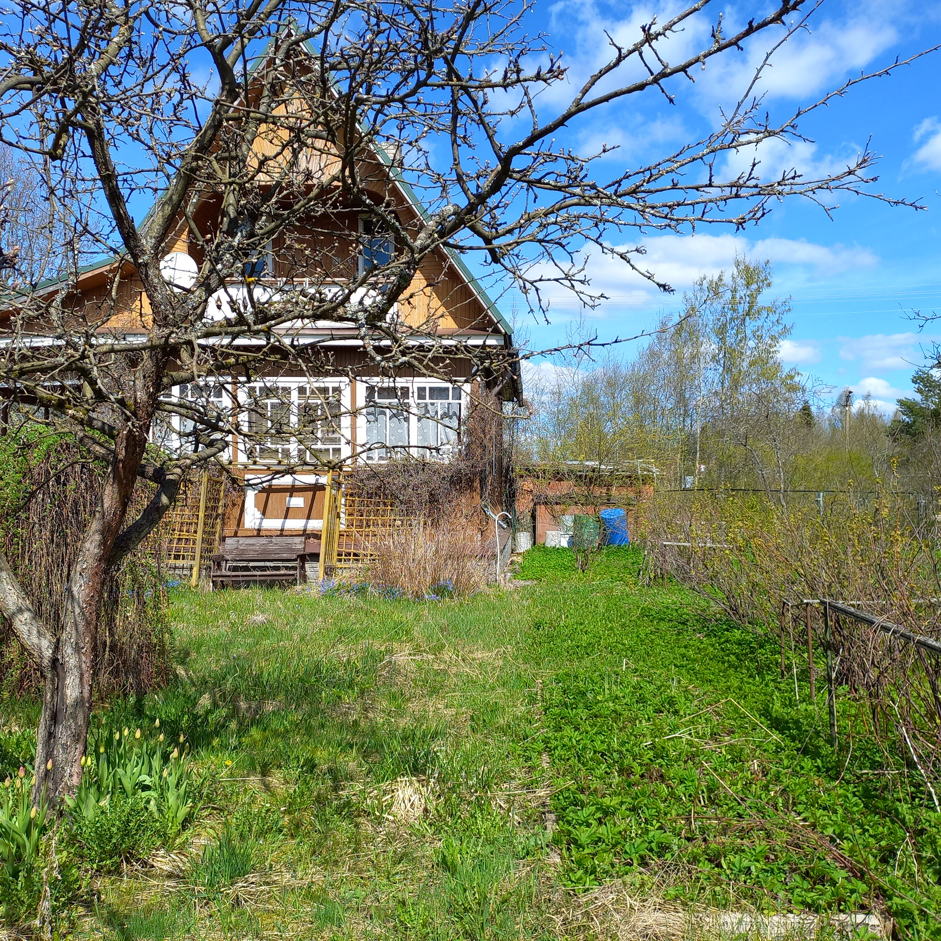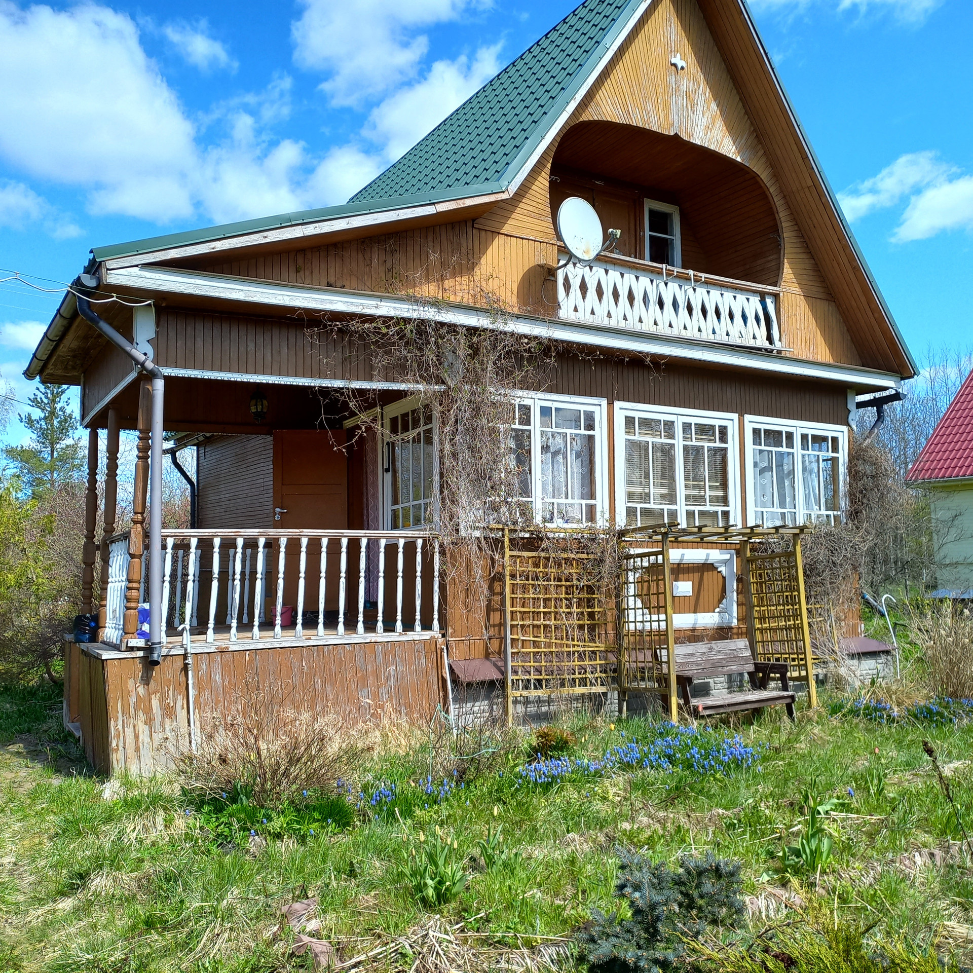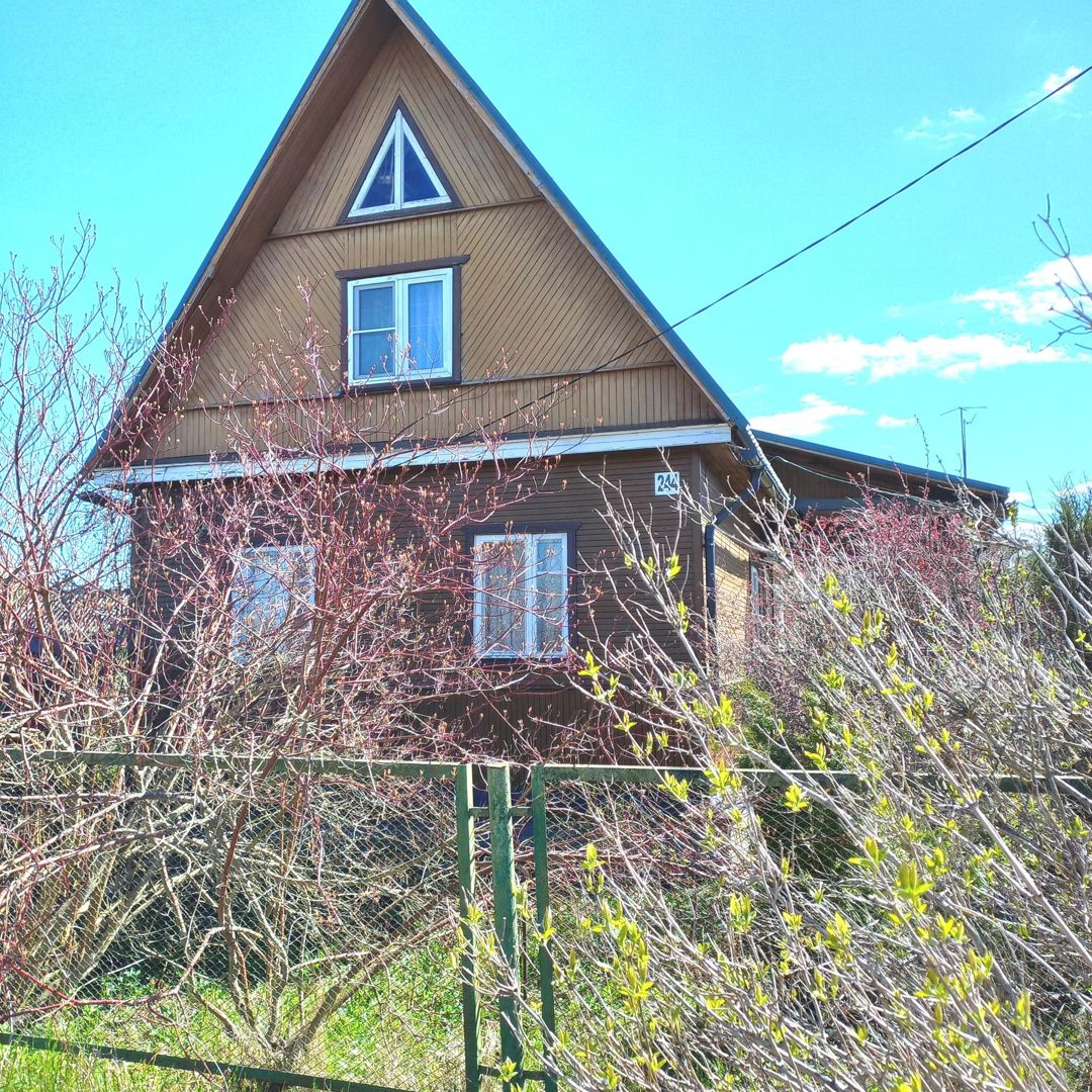 Крепкий уютный жилой дом  на участке с баней и гаражом.От настоящий хозяйских рук.Дом с просторной верандой, печкой, горячей водой.Две раздельные комнаты внизу, спальня с окном-стеклопакетом  наверху .Есть балкончик.Хорошая баня с душем, бойлером, печкой, стиральной машинкой.Крепкий сарай.Колодец .В садоводстве 2 магазина, приезжает лавка.От ж/д по расписанию ходит автобус.Соседи разные-кто то живет постоянно.До леса минут 7-10 пешком.Въезд через шлагбаум.Взносы уплачены.Еще больше подробностей по телефону.