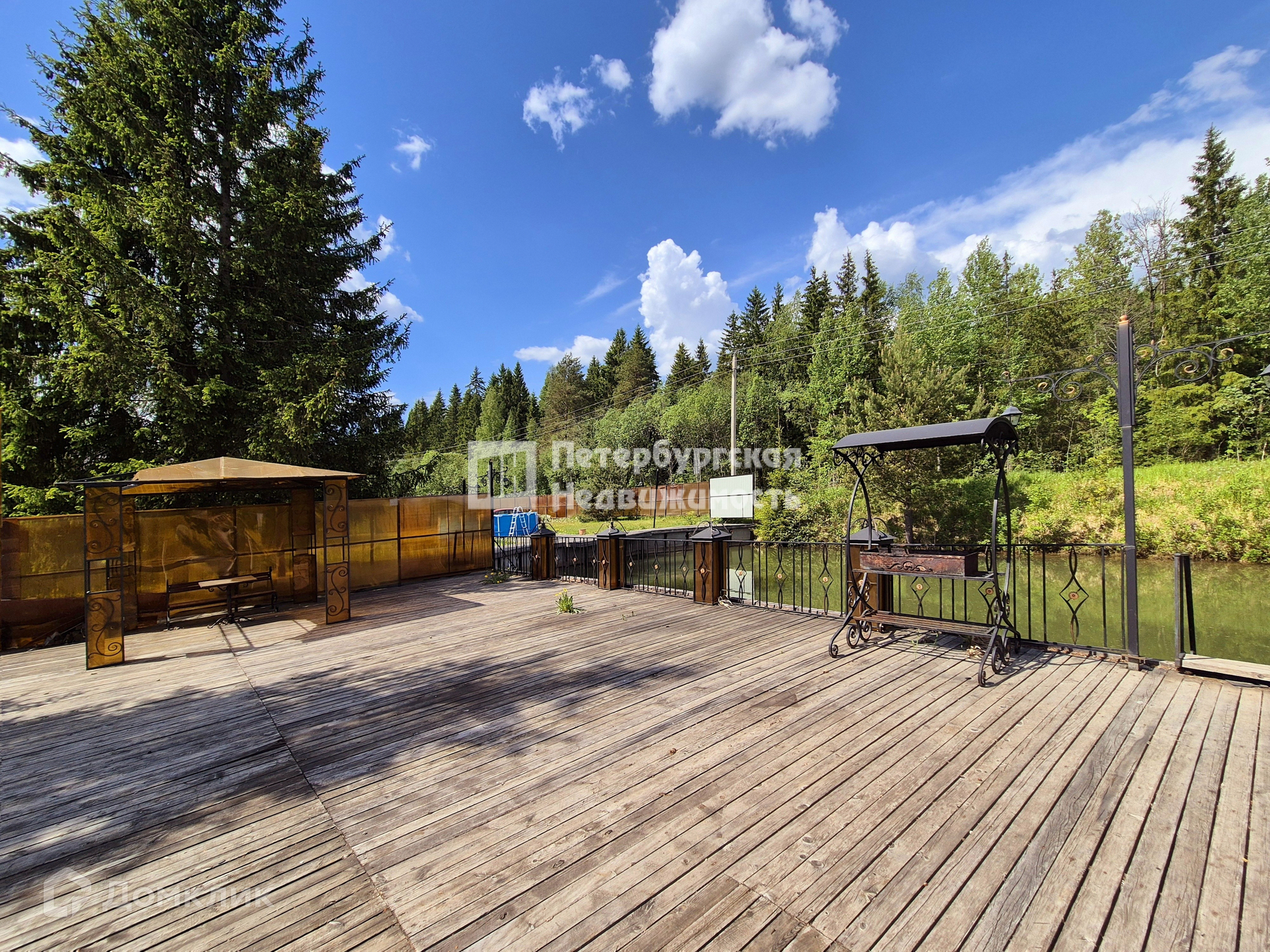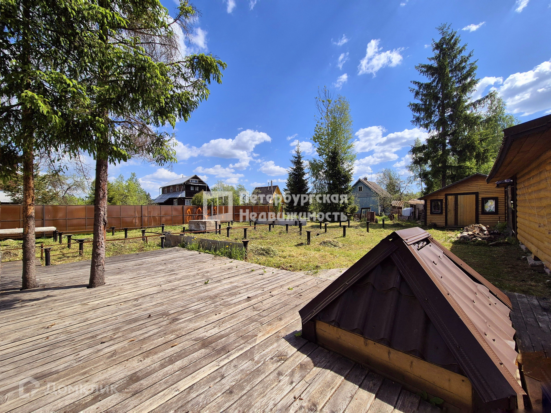 Электричество 8 квт, добротный современный сарай 20 кв.м., отдельный колодец (6-ть колец), канализация с системой очистки (фильтрация), фундамент из винтовых свай (заглубление на 3-и метра, монтаж фундамента выполнен специализированной компанией с привлечением спец техники). На террасе расположенs мангал и беседка.
