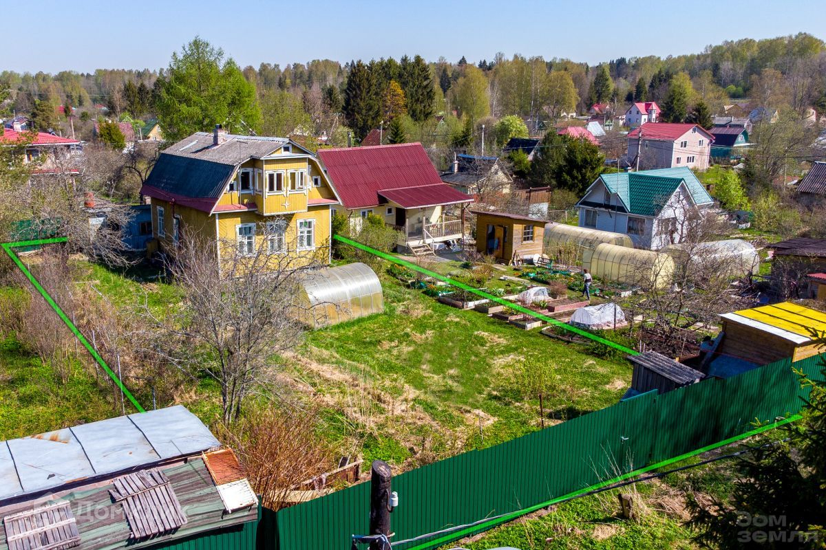 Участок 6.19 соток, прямоугольной формы. Участок стоит на возвышенности, огорожен с 3-х сторон. Машину можно припарковать рядом с участком вдоль линии. На участке есть парник и сарай для хранения инвентаря.