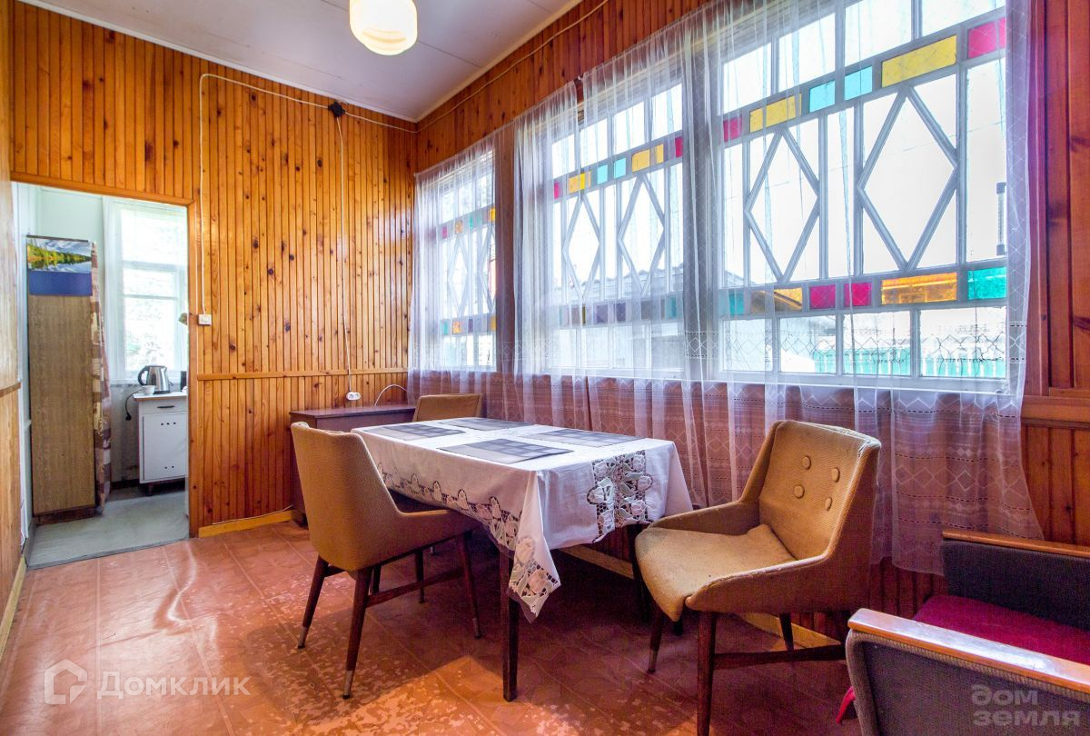 Дом построен из бревна. В доме 5 комнат, кирпичная печь, просторная веранда, кухня. Потолки 3 м.