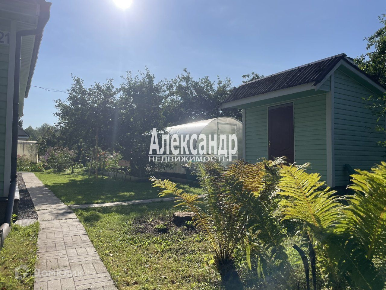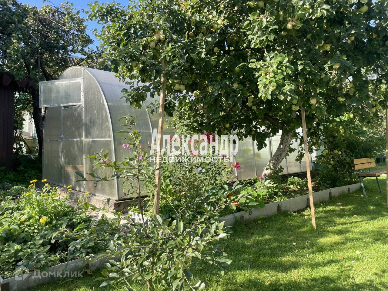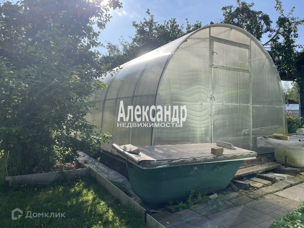 Участок, на котором находятся постройки высокий ровный и сухой. Даже в самый сильный дождь, или во время обильного таяния снега здесь можно ходить в простых тапочках не боясь испачкаться или замочить ноги. Здесь высажено много растений. Это цветы, плодовые и ягодные деревья, кустарники, клубника... Устроены дорожки и почти идеальные газоны. Участок огорожен. Есть калитка и ворота для въезда автомобиля.