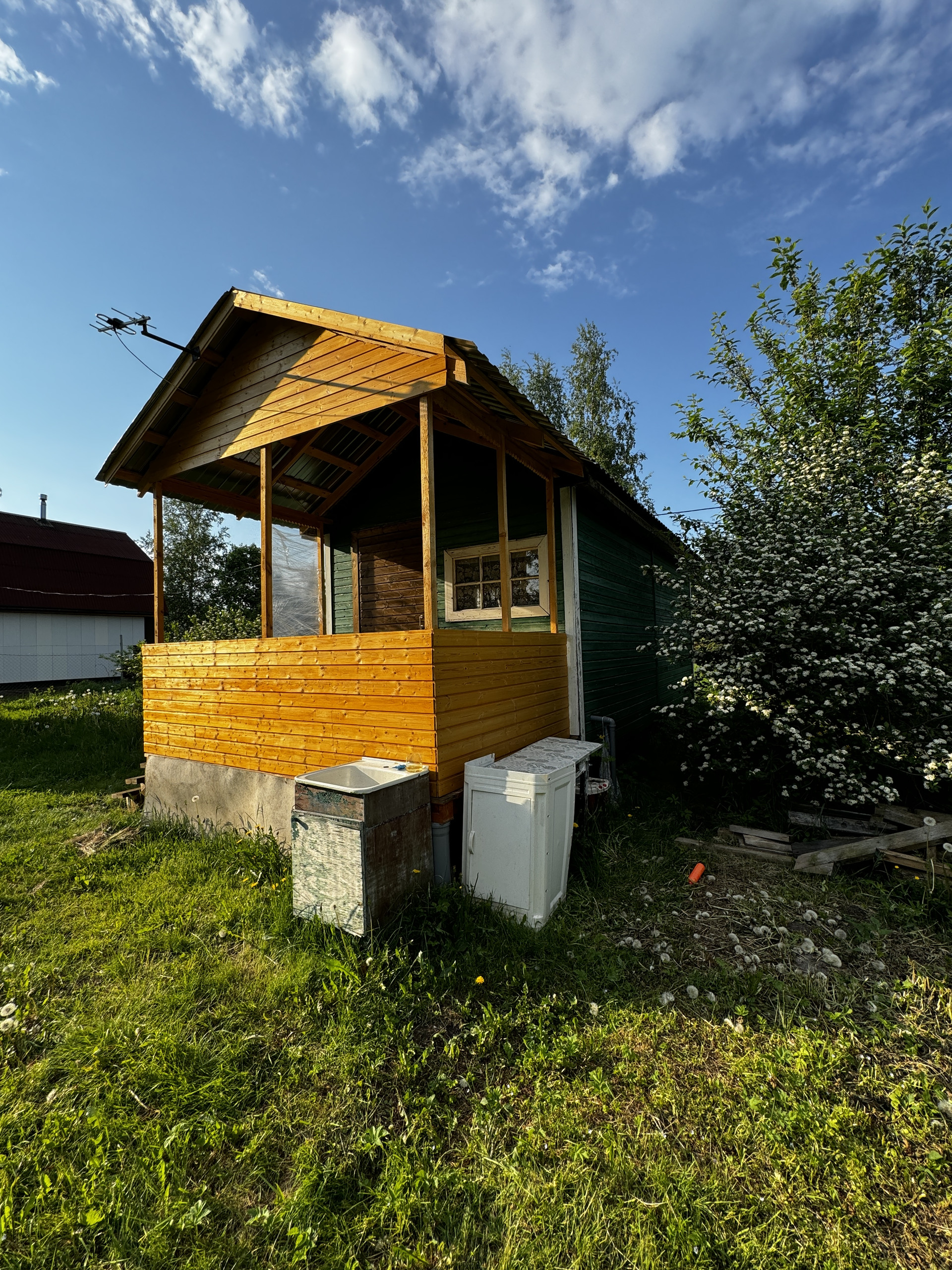 Продается участок 6 соток. На территории летний домик 6x3 с открытой терассой 3х2. Сарай с хозблоком 3х2. Включает в себя туалет и душевую кабинку. Электричество до 15 КВт), центральный водопровод разводка проведена в дом и на уличный умывальник.
