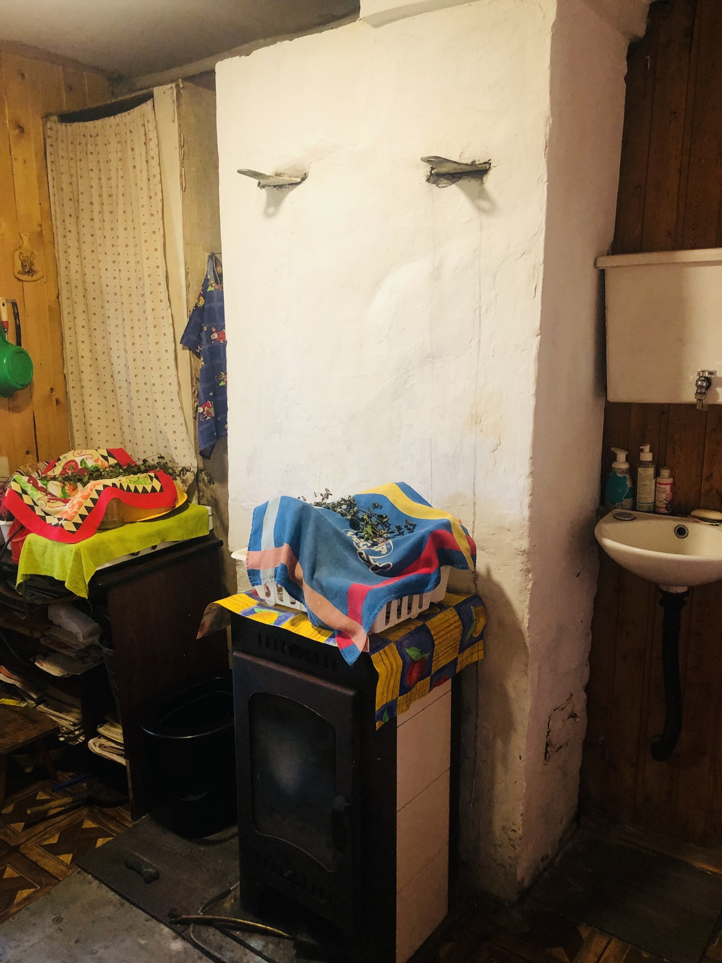 Дом брусовой в хорошем состоянии. Фундамент - ж/б блоки, крыша покрыта шифером, внешняя отделка-вагонка. Внутренняя отделка- вагонка. На первом этаже: прихожая, гостиная, кухня и  комната; на втором этаже 2 комнаты. В доме стоит кирпичная печь.