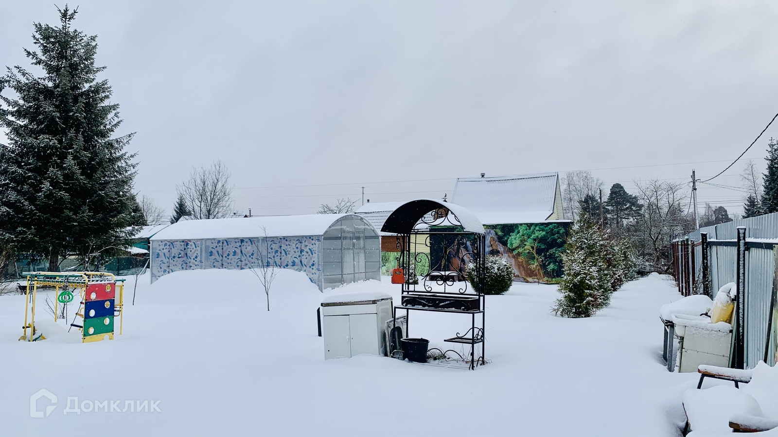 * Ограждение: профлист, штакетник, распашные ворота, калитка. Внутри забор облагорожен фото сеткой