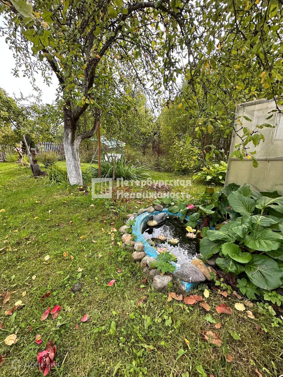 На участке дом, баня, хоз.постройки, гараж, гостевой домик, туалет уличный, колодец, речка. Участок правильной формы, разработан, ровный, с ландшафтным дизайном. Садоводство обжитое, многие проживают круглогодично.