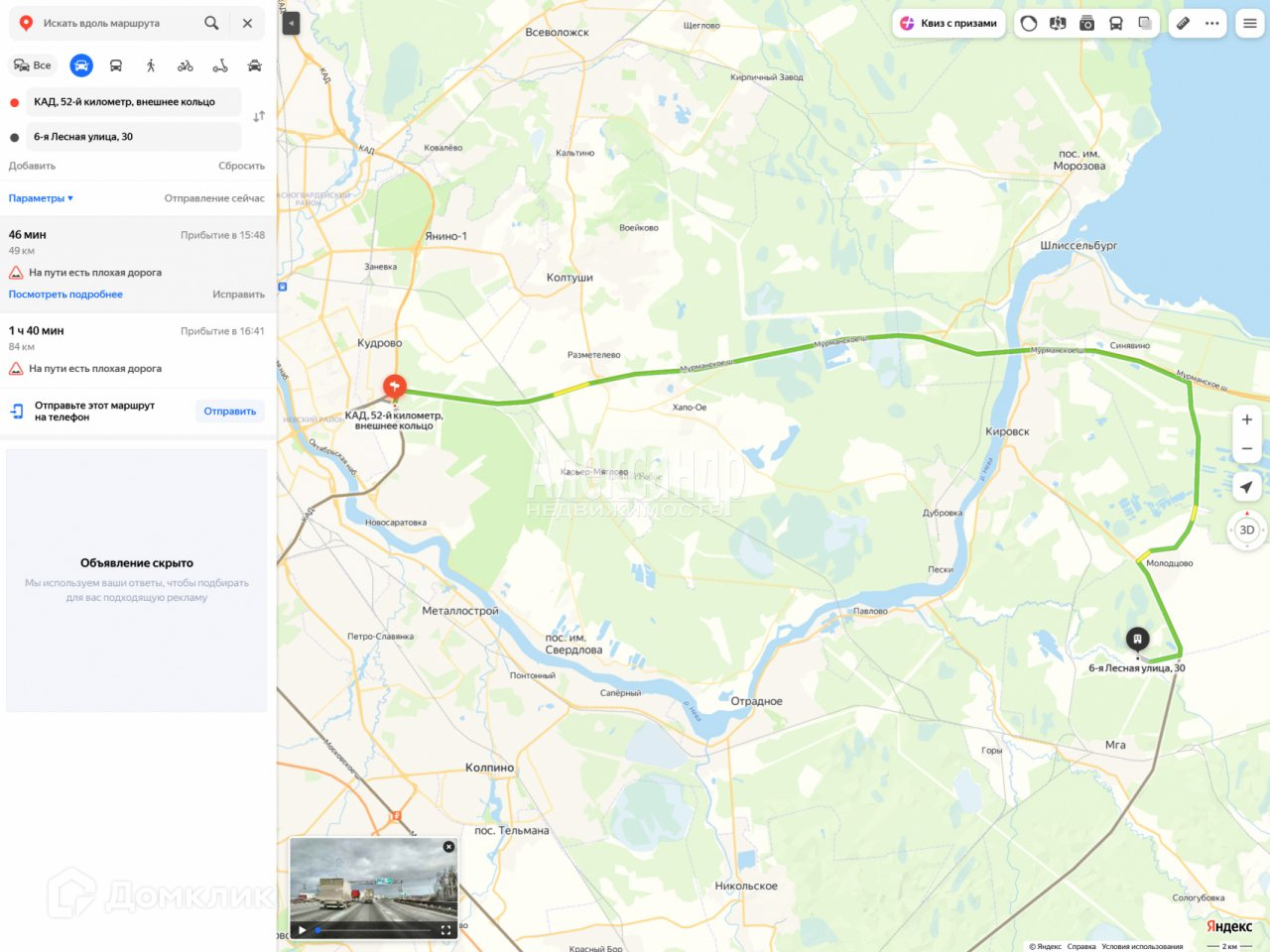 На авто путь от КАД занимает 45 минут (49 км).