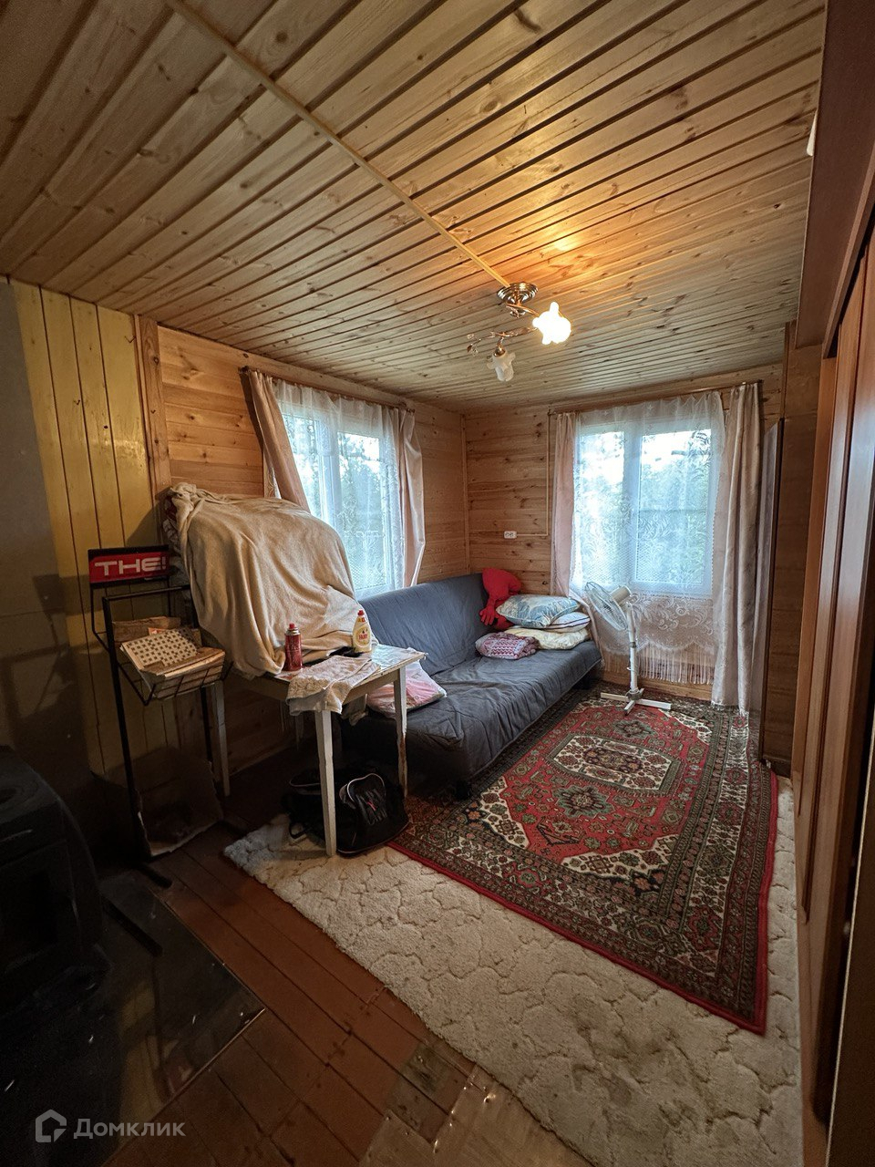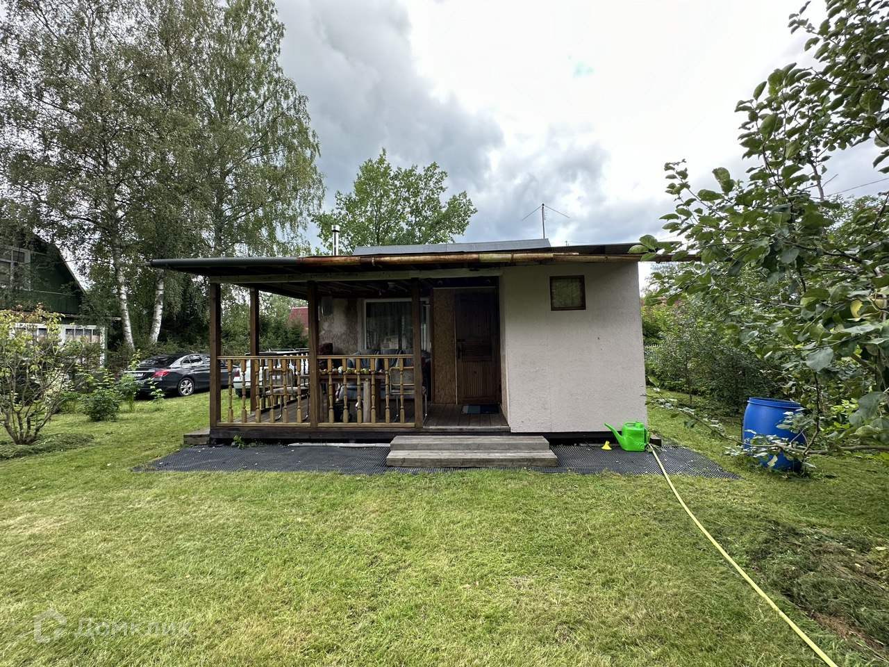 В центре расположен уютный, щитовой одноэтажный дом, площадью 6х7м, с выносом закрытой террасы, теплый, отапливаемый. К дому подключена вода, через насос и собственный колодец. Для комфорта установлена печь, водонагреватель и удобный душ. Дом утеплен изнутри мин. ватой, на крыше 5мм слоем, сверху и снизу биполь "Технониколь", "Т" фундамент 400х400 мм.