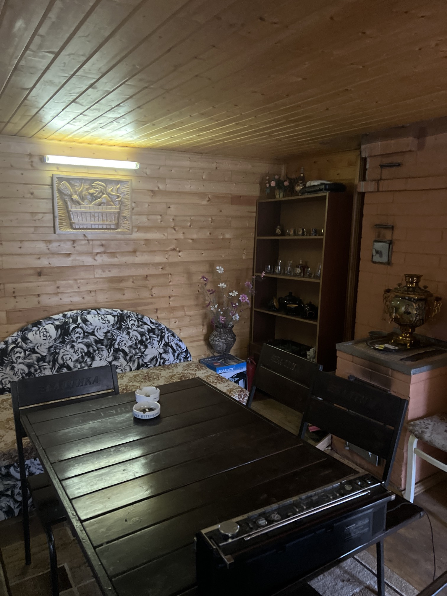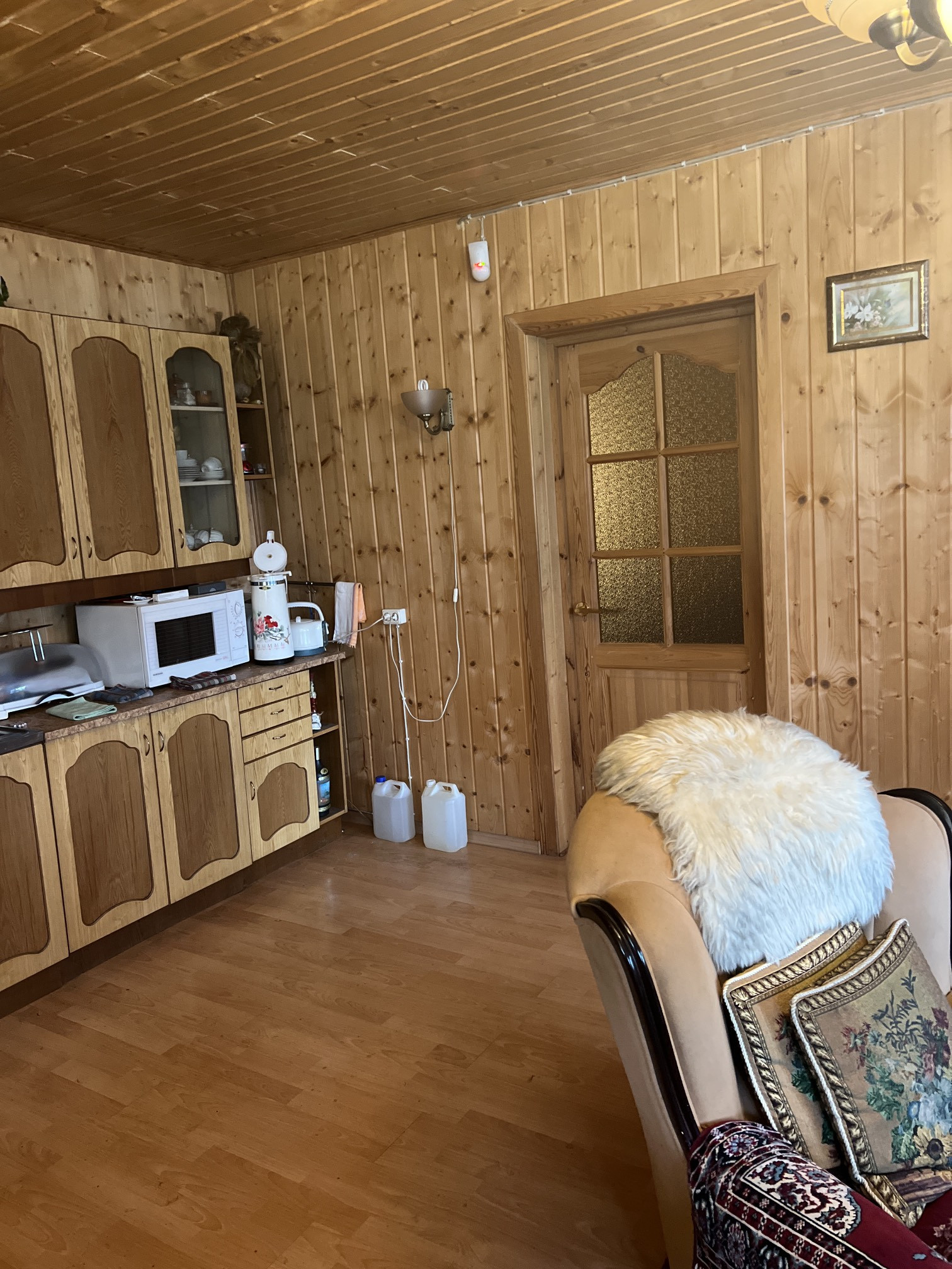 В доме камин, электрические батареи, электрическая плита и газовая от баллонов, имеется туалет (без септика), горячая вода от электр. бойлера, высота потолков 2.5 метров, дом продается со всей мебелью и техникой, соответствует фотографиям.