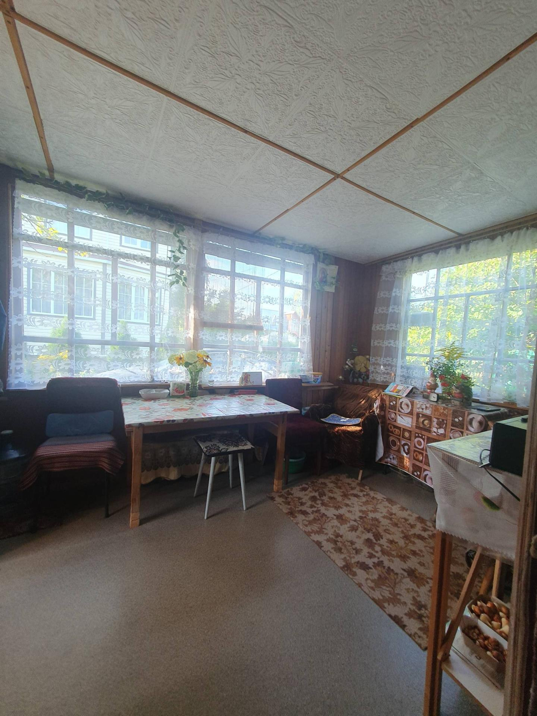 Уютное крыльцо-терраса, веранда-гостиная,кухня, три спальни. Имеется старинная печь.