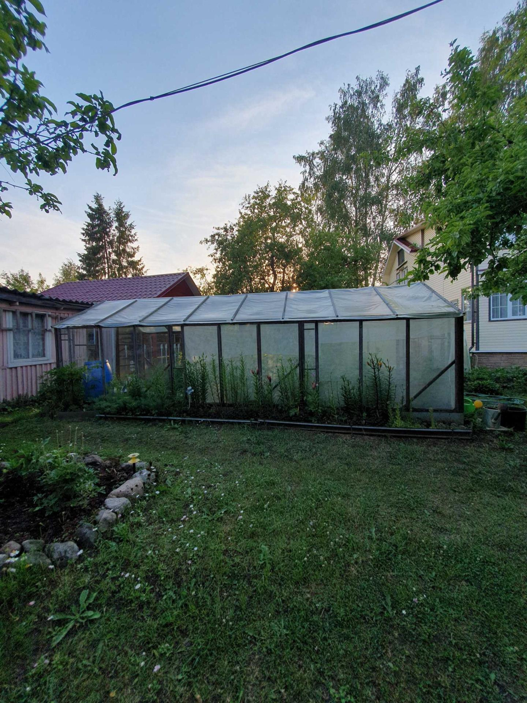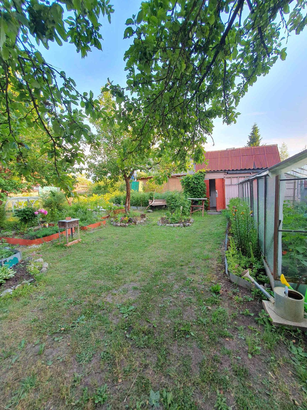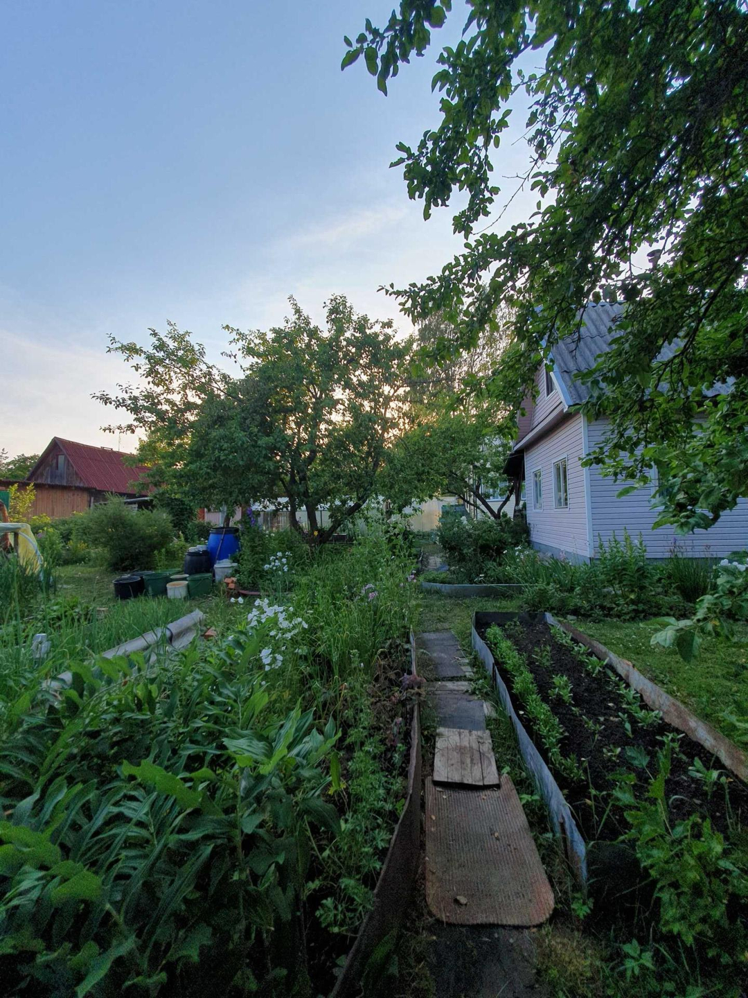 Ровный сухой участок грамотно зонирован,сделан дренаж, "работает" каждый сантиметр. Клумбы с розами,пионами,лилиями разных цветов дарят красоту и благоухание;большой плодоносящий малинник, на участке растут яблони,груши, слива разных сортов. Разбиты грядки для выращивания различных овощей, установлены теплица и парник.
