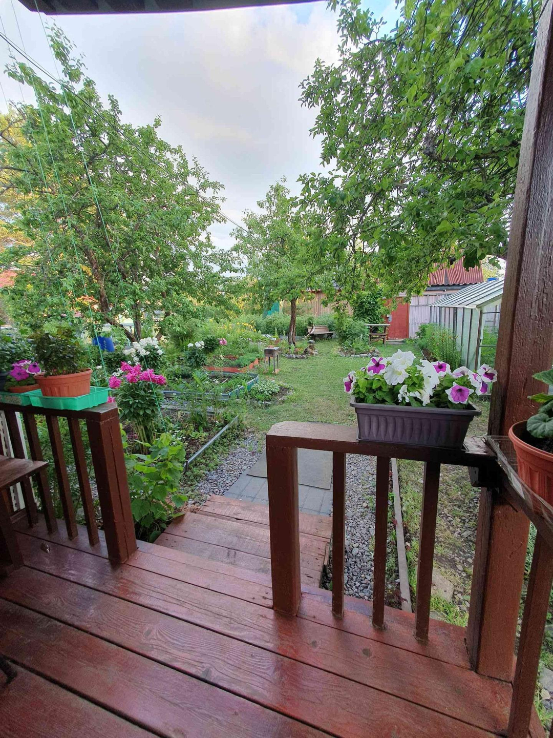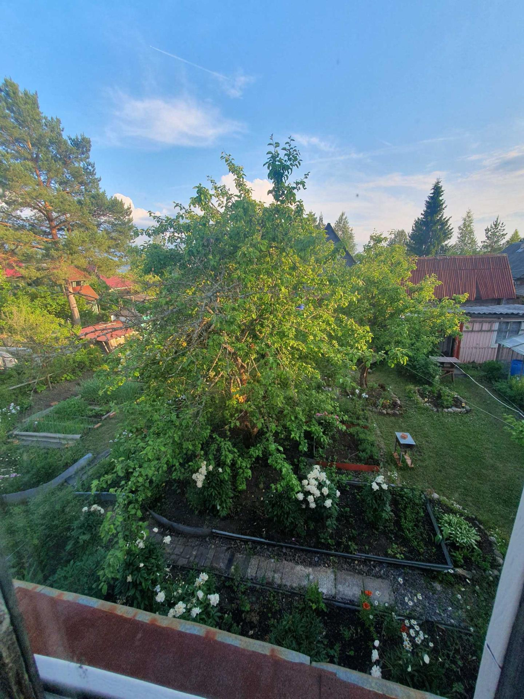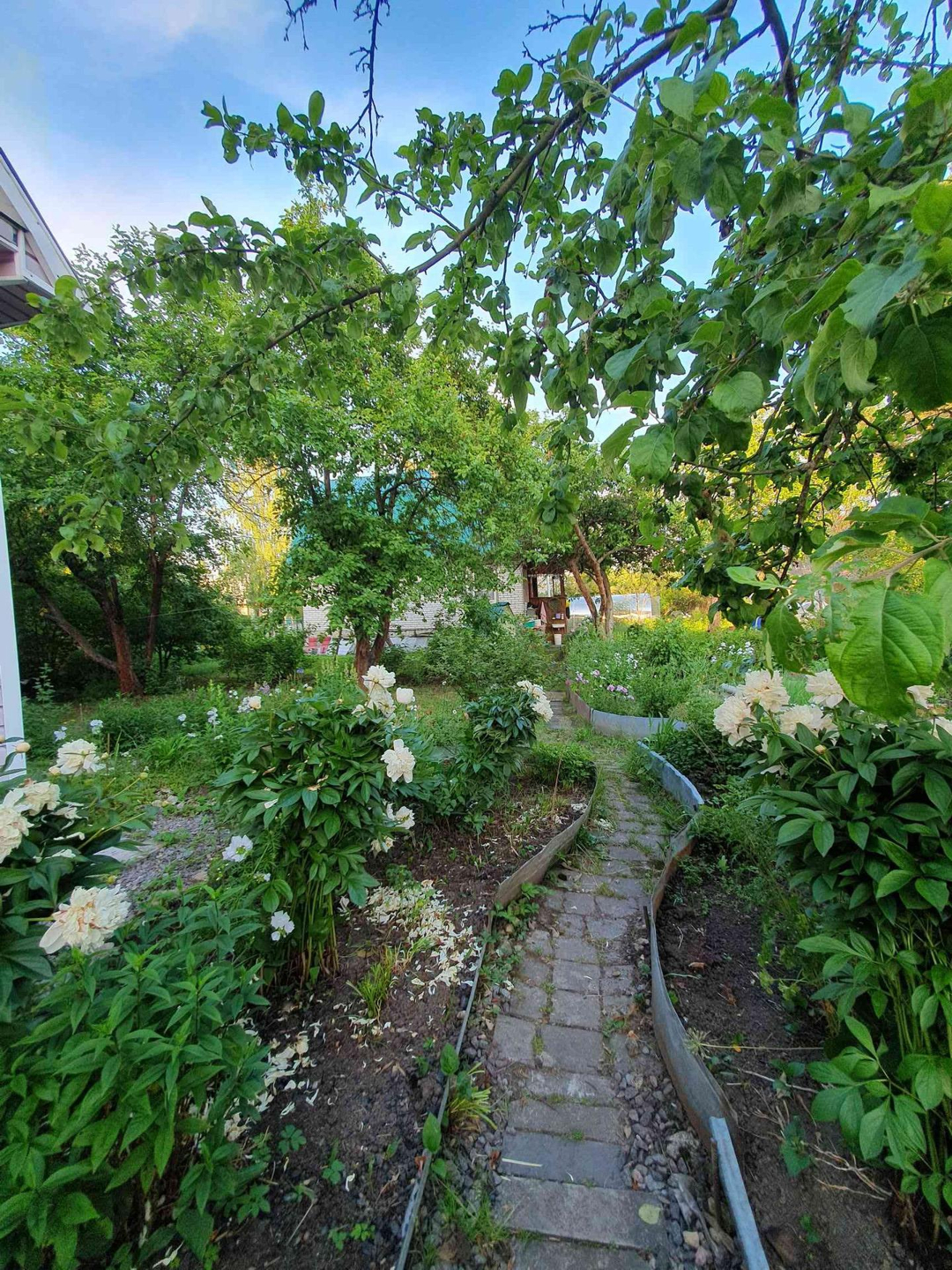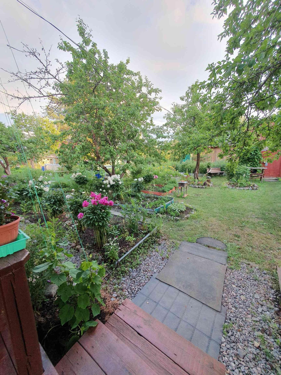 Ровный сухой участок грамотно зонирован,сделан дренаж, "работает" каждый сантиметр. Клумбы с розами,пионами,лилиями разных цветов дарят красоту и благоухание;большой плодоносящий малинник, на участке растут яблони,груши, слива разных сортов. Разбиты грядки для выращивания различных овощей, установлены теплица и парник.