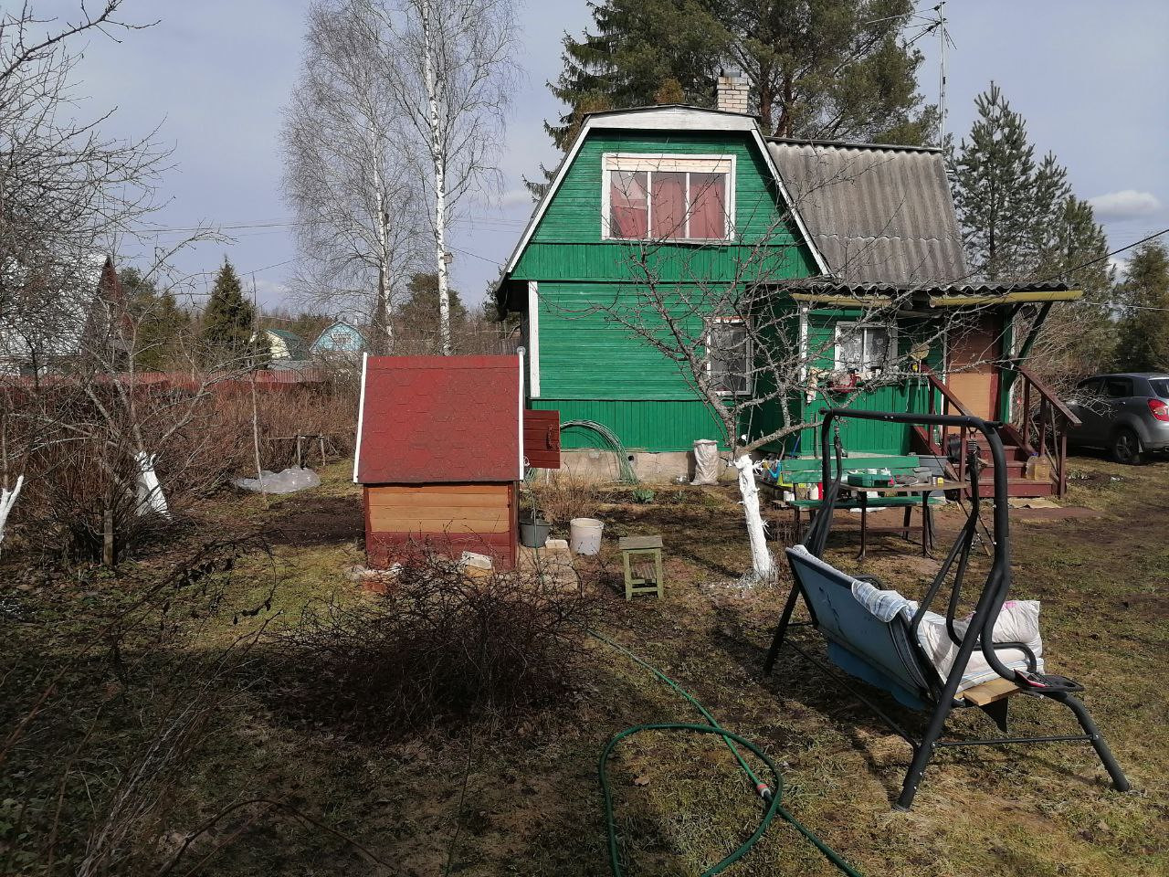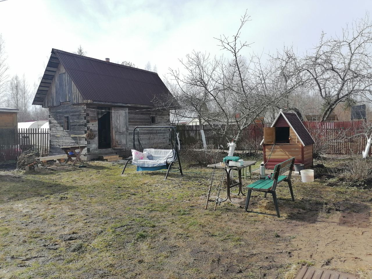 На участке растут плодовые деревья: яблони, сливы, кусты (смородины, крыжовника, малины и т.д.)