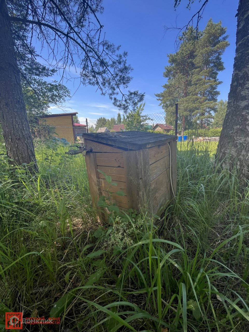 На участке имеются постройки: сарай (под снос), гараж, туалет дощатый; скважина 11м.(зеркало высокое,выкачивается поверхностным насосом).