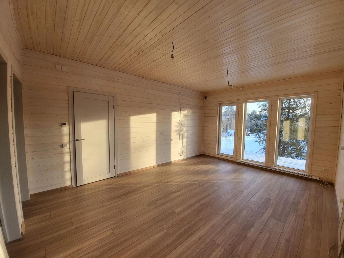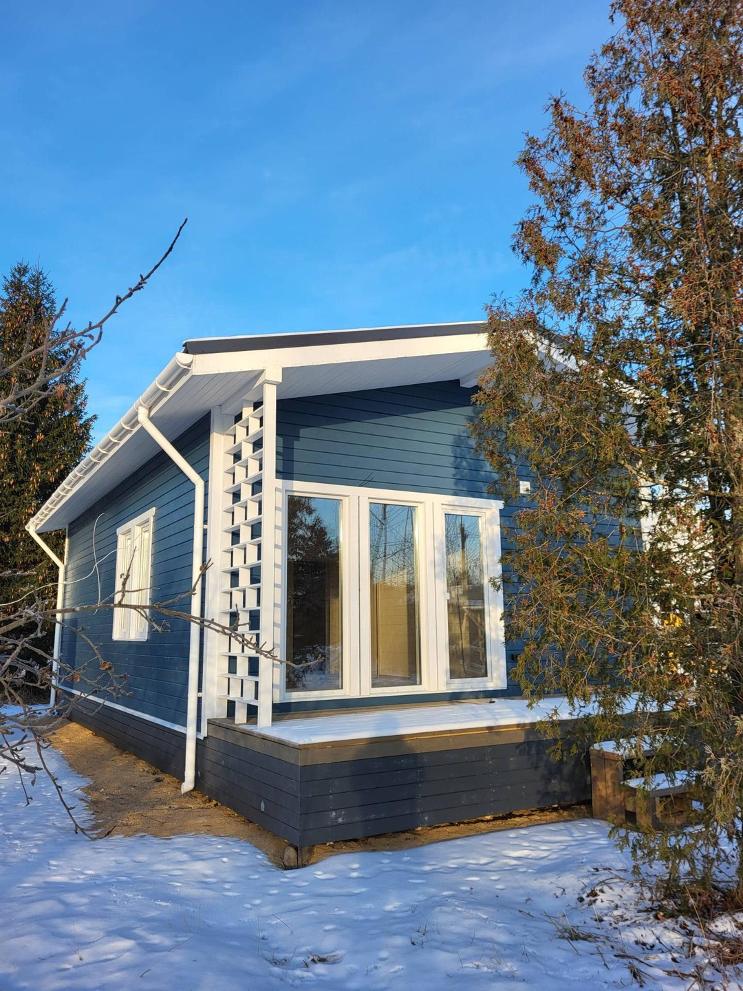 Продам новый современный дом на юге Ленинградской области (не доезжая Вырицы 3км) в скандинавской стиле с панорамными окнами и просторной террасой, по цене однокомнатной квартиры, общей площади 65м². Свой дом со своей свободой, независимой от эпидемии и локдаунов. Вдали от городской суеты. СНТ "Генетика" До золотого пляжа в Вырице 4км. Дом для круглогодичного проживания с чистовой отделкой, электрикой, и отоплением. Две спальни, кухня-столовая, санузел, прихожая.
