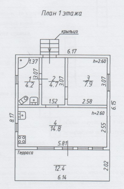1этажный жилой дом (оформлен тоже, как жилой), площадью 46 м² с планировкой 2Евро.