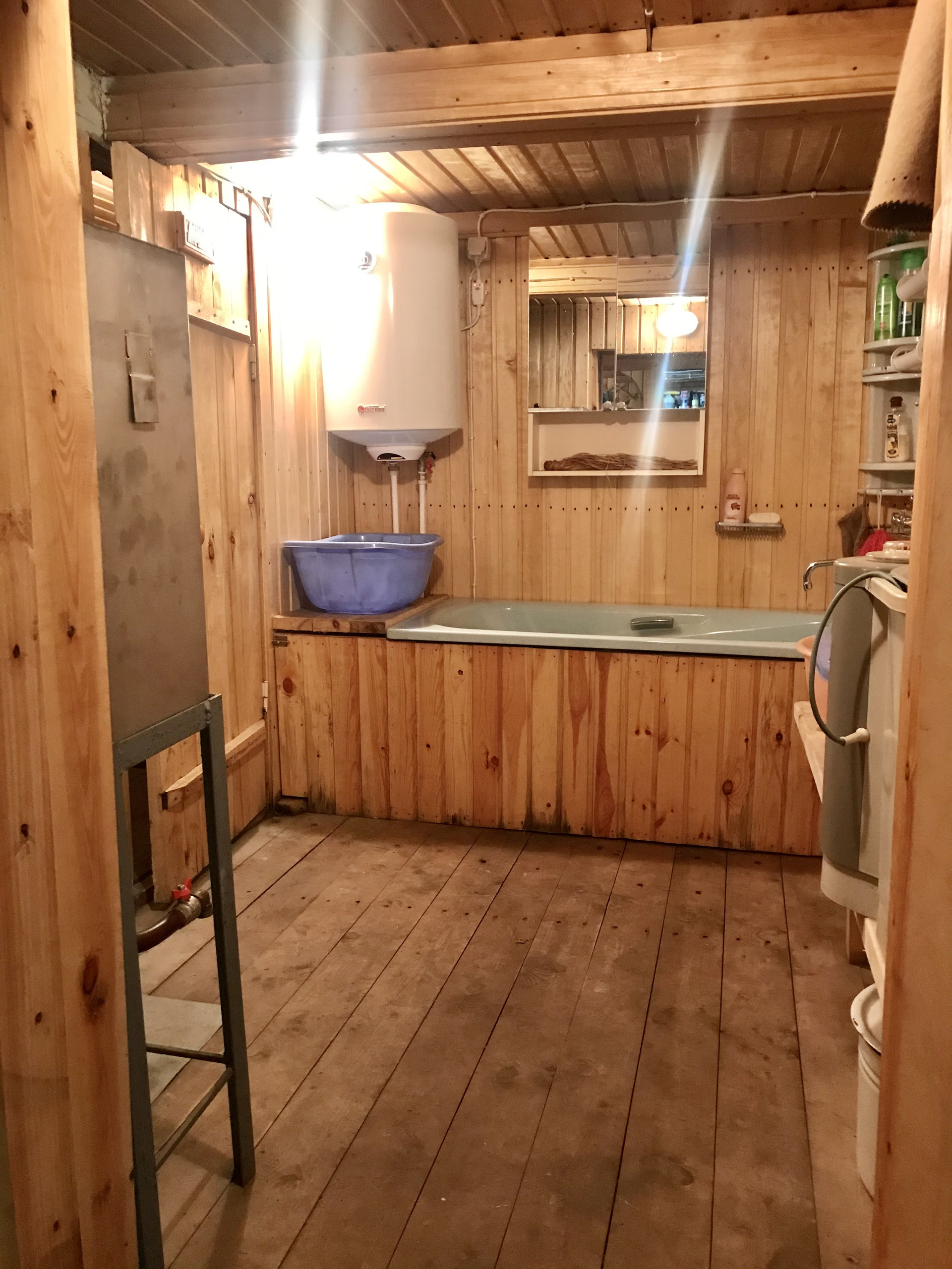 В хозблоке установлена насосная станция с бойлером, что обеспечивает горячей водой банную зону и кухню в доме.