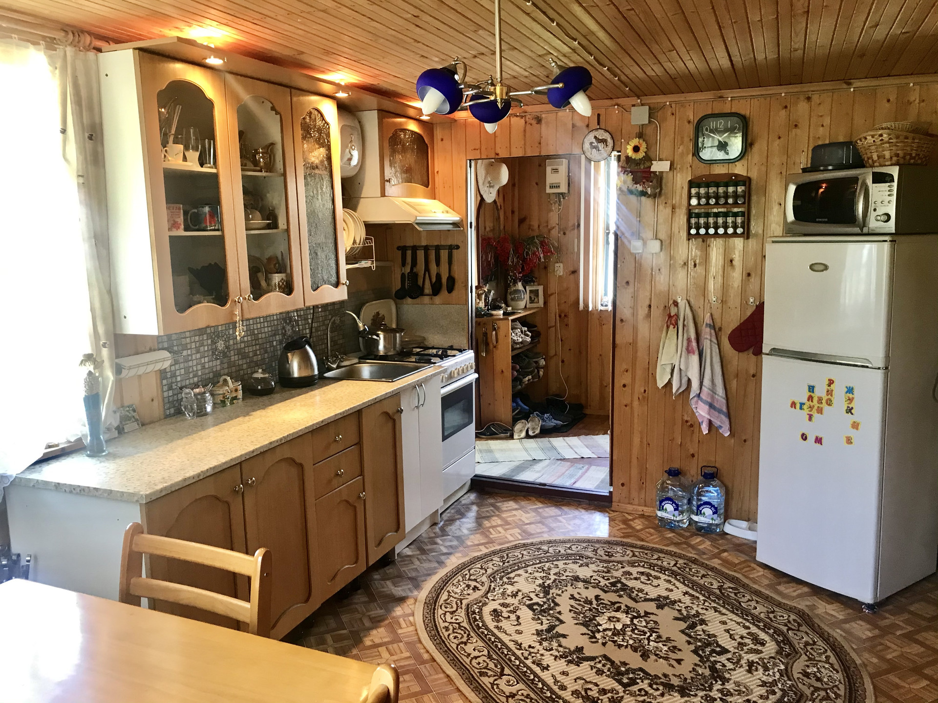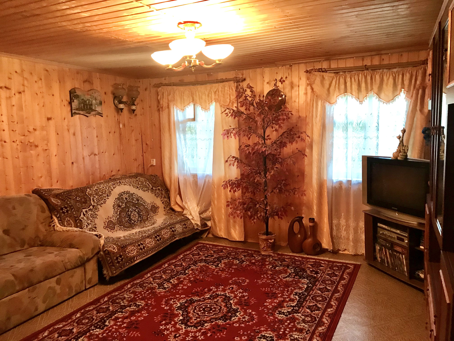 Дом внутри полностью обшит деревом. Вся мебель и техника также останутся новым владельцам! В каждой комнате электрические обогреватели. Установлены спутниковая тарелка и обычная тв.антенна. Стоит газовая плита, работающая от баллона.