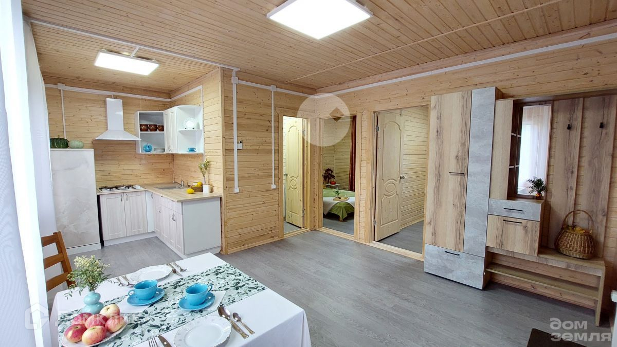 Дом полностью укомплектован и готов к проживанию. Полная наружная и внутренняя отделка: стиральная машина, встроенная кухня, плита, вытяжка, холодильник, душевая кабина, унитаз, раковина, радиаторы отопления, мебель.
