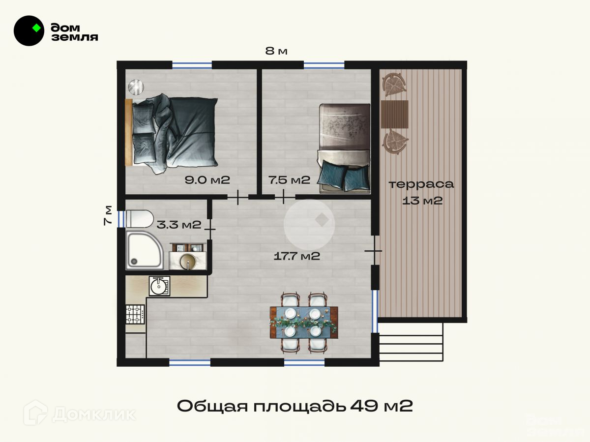Терраса: 13 кв.м., выходит на южную сторону, идеальное место для дачного релакса.