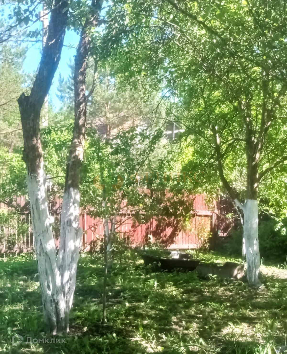 Участок 6 соток разработанный с плодовыми деревьями ,  дренаж, сухой, ровный, со всех сторон деревянный забор. Вокруг дома обустроены дорожки,  освещение .
