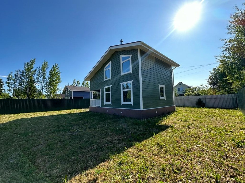 Новый коттедж для круглогодичного проживания. Удобная планировка: на первом этаже кухня-гостиная с камином, одна спальня, санузел. На втором этаже две спальни и open space, который можно по-разному организовать. Участок правильной геометрии, позволяющий реализовать любые дизайнерские идеи.