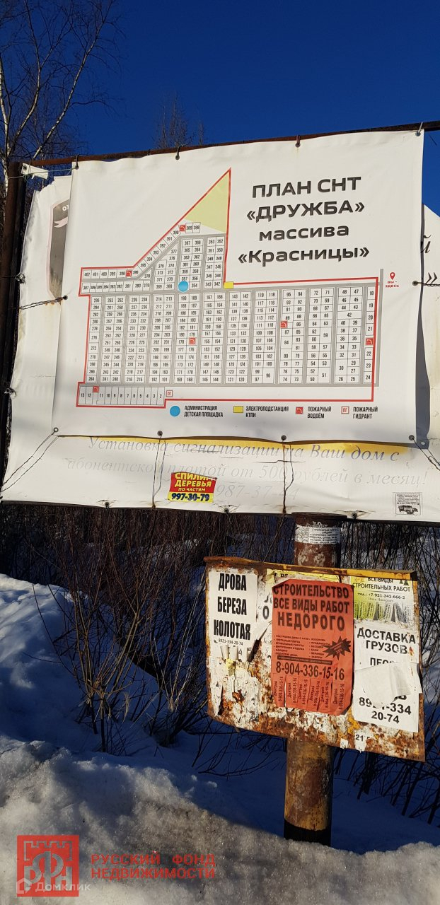 №306930 В массиве Красницы, СНТ Дружба предлагается участок под строительство вашей дачи. Участок зеленый, ели, деревья. На участке есть заезд, вагончик для временного пребывания , подключена эл.энергия
