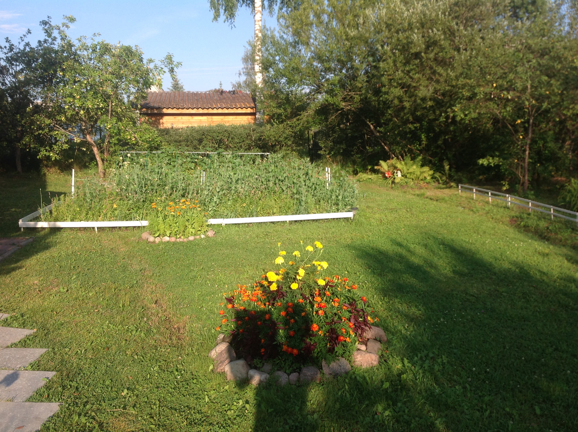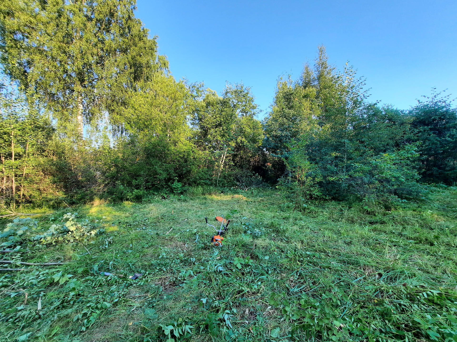 Так как участком не пользовались 6 лет были проведены работы по расчистке от осин в полезной части участка. Участок отделен от дороги и части соседей живой изгородью, что создаёт чувство уюта и защищенности.
