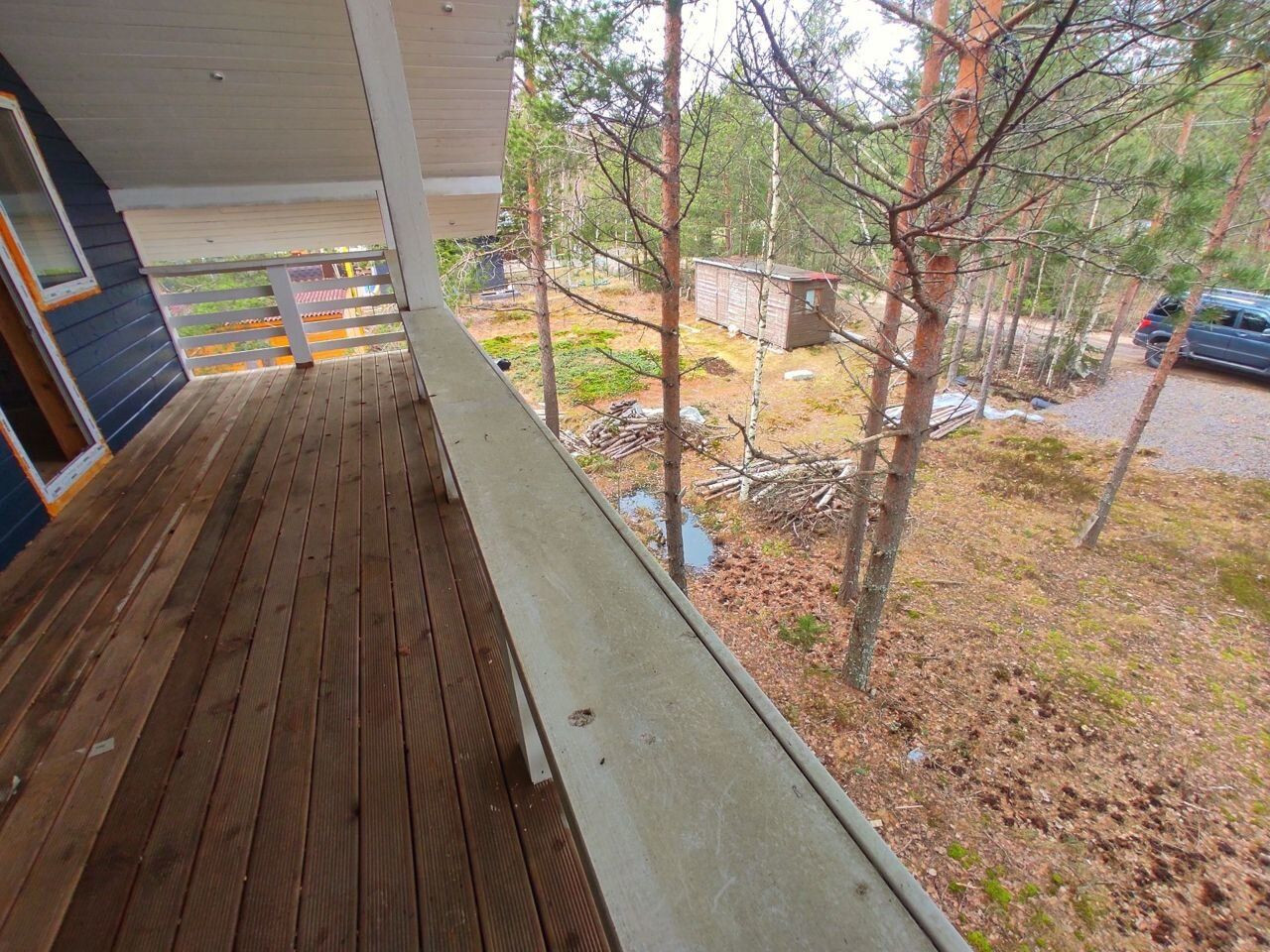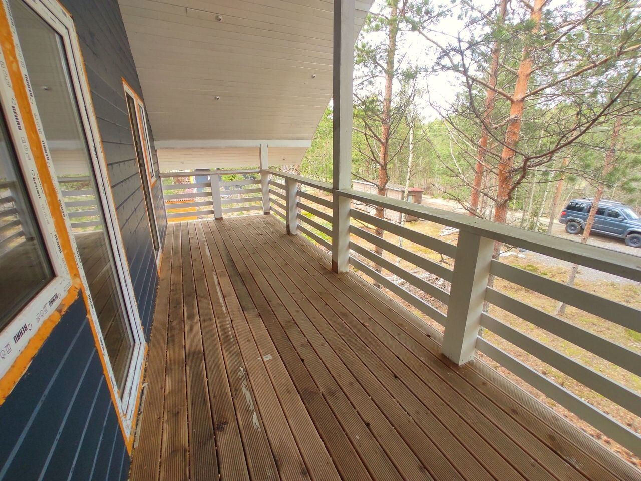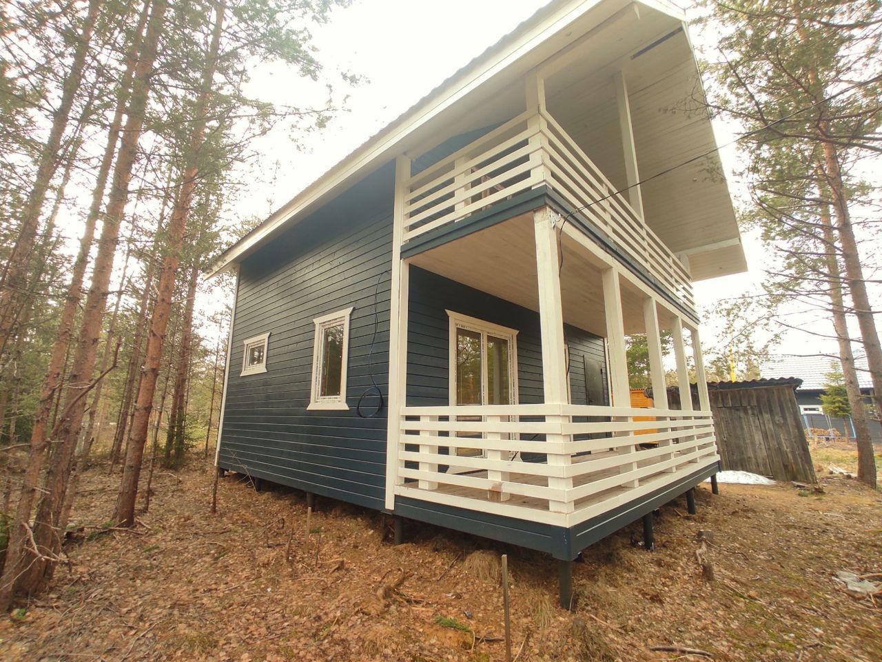 Дом оформлен как жилой. Просторная терраса на первом этаже и большой балкон на втором этаже, который соединяет обе спальни.