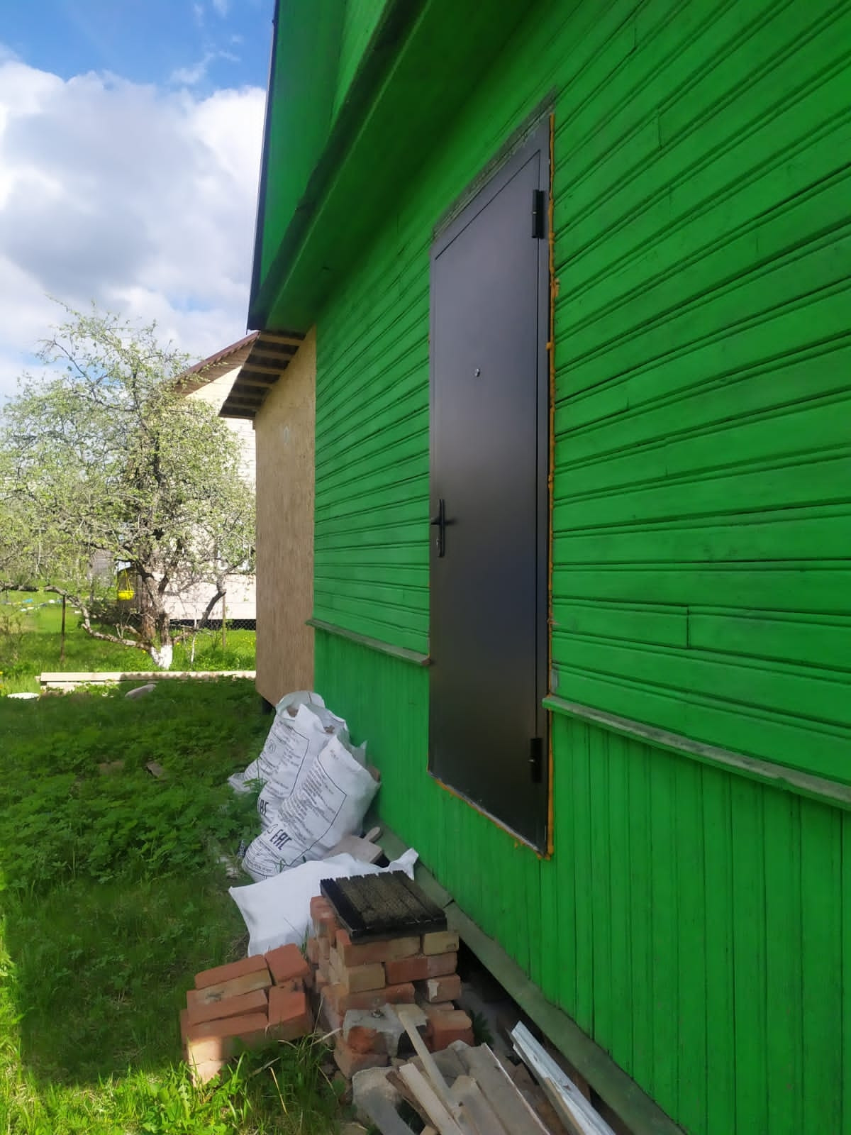 12 соток, двухэтажный, дом утеплен минеральной ватой, первый этаж отделка вагонкой, второй этаж без отделки,  на участке скважина . При доме есть пристройка для туалета и душевой, участок ровный сухой есть плодовые деревья. В нескольких метрах от дома есть питьевой колодец, проходит проверку каждый год.