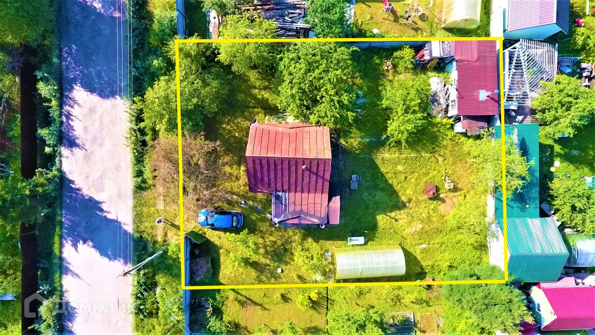 Площадь составляет 6 соток.  Есть заезд на участок. Огорожен - частично.