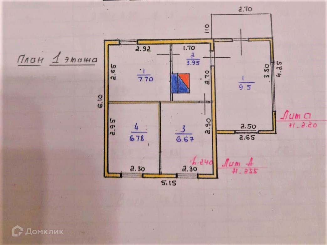 • На первом этаже : кухня, прихожая и 3 изолированных комнаты .