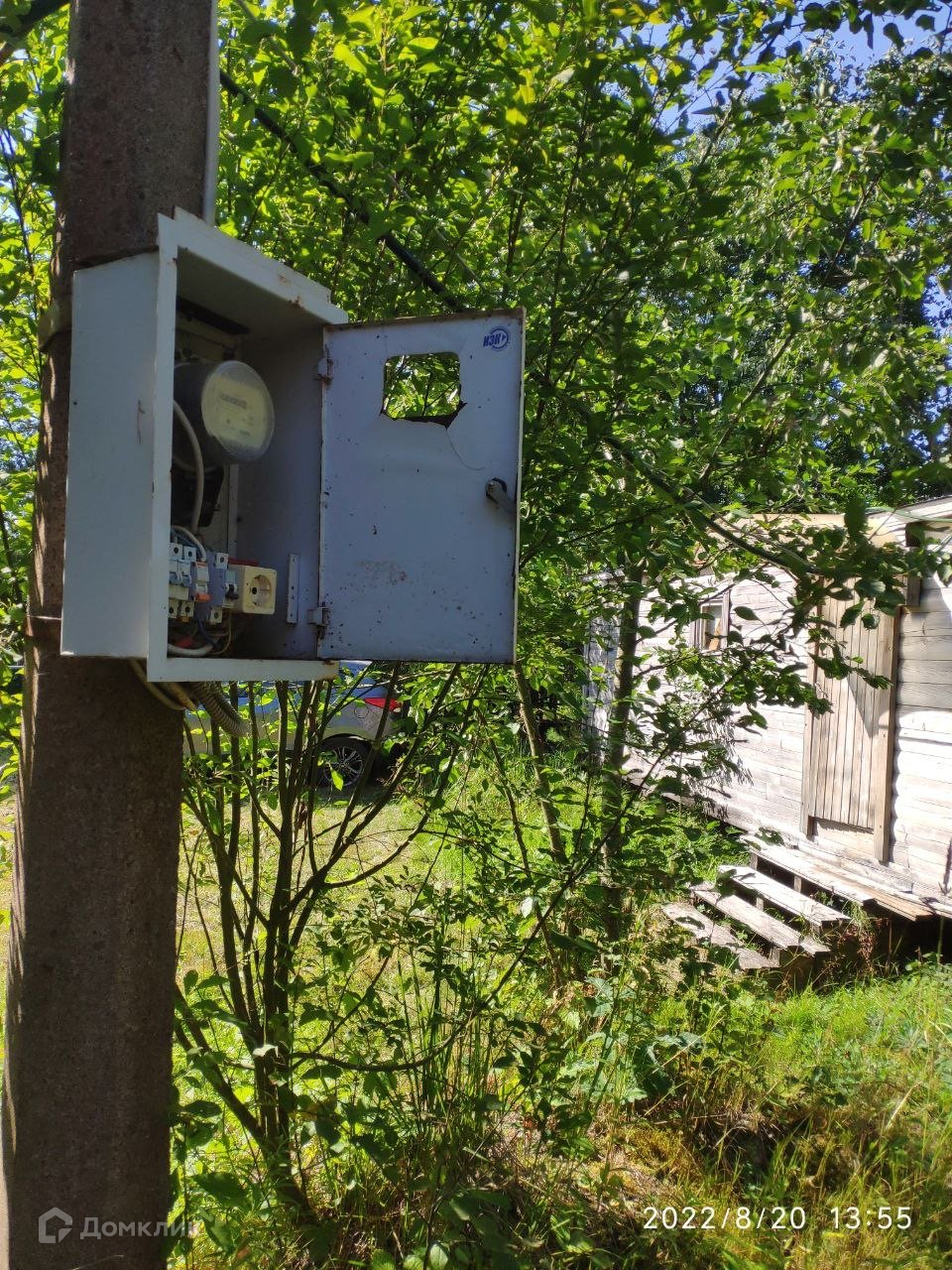 Столб с электричеством и электрощитом.