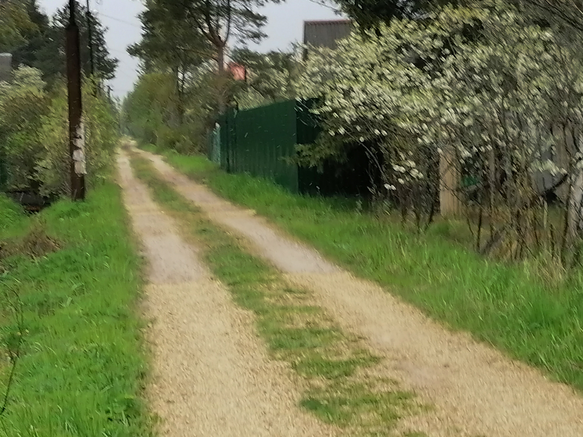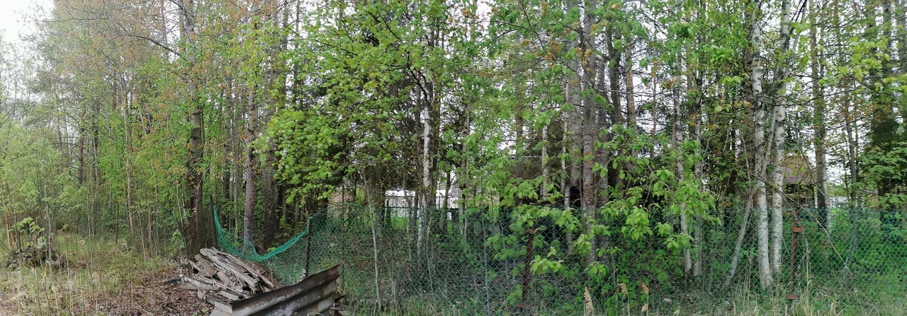 За участком небольшая лесополоса. По границам установлен забор (сетка рабица) с воротами.