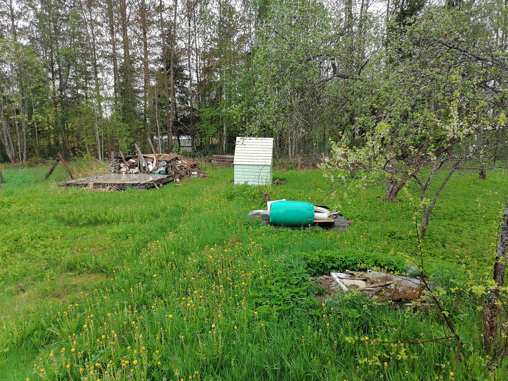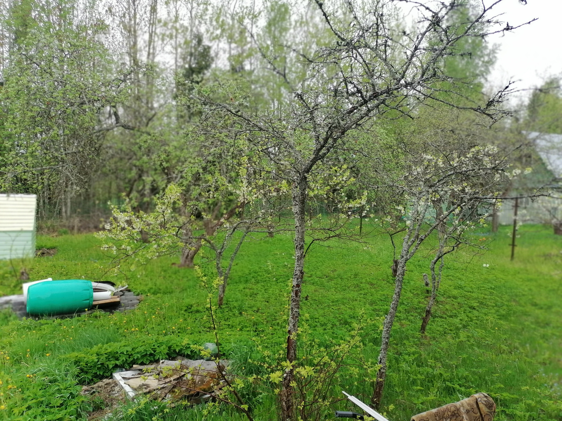 Участок правильной формы (802 кв.м.), ровный, разработанный. На нем растут плодовые деревья и кустарники: слива, яблоня, смородина (красная, черная, белая), крыжовник (черный, красный).