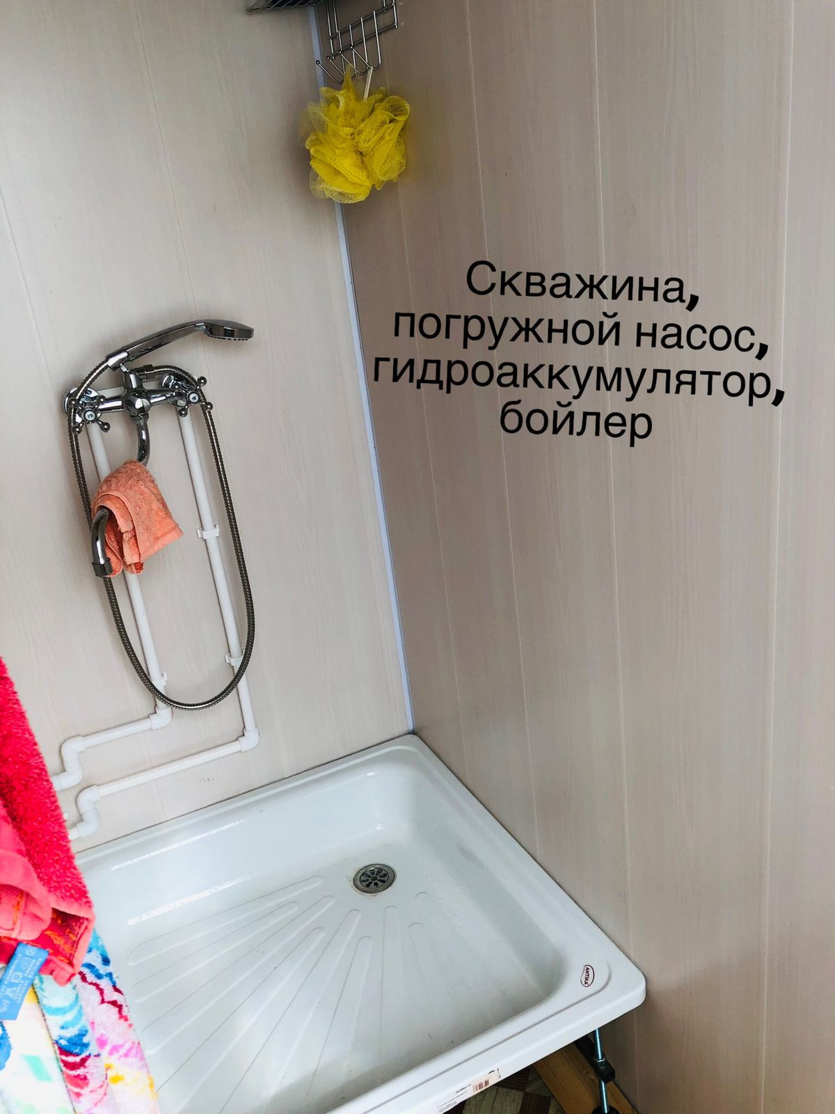 - Вода - скважина, заведена в дом. Установлена душевая.