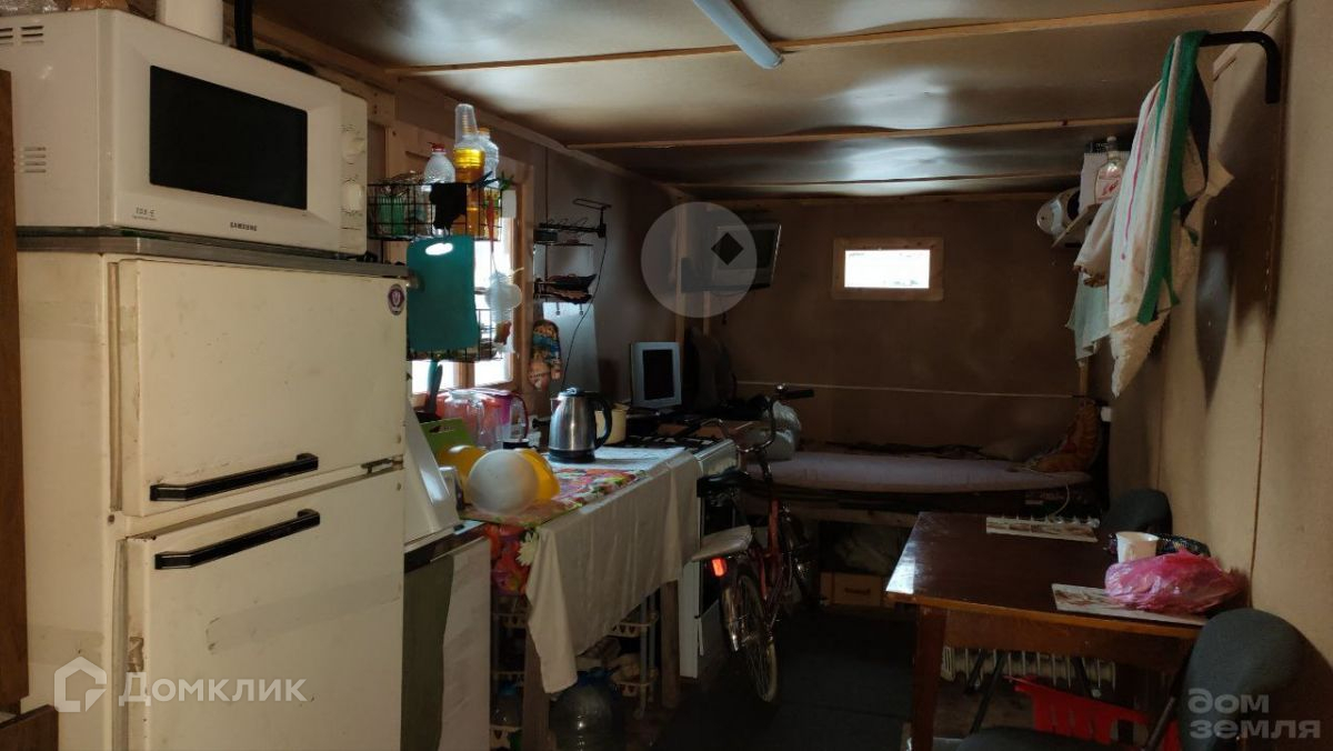 На участке удобно расположены две жилые бытовки, соединённые между собой террасой. На открытой террасе в летнее время будет приятно выпить чашечку кофе утром и посидеть с хорошей компанией вечером. В одной из бытовок обустроена кухня-столовая. В другой, утеплённой, находится печь-буржуйка и спальня. Размеры бытовок: 2,5*6 - 15 кв.м - 2 шт.
