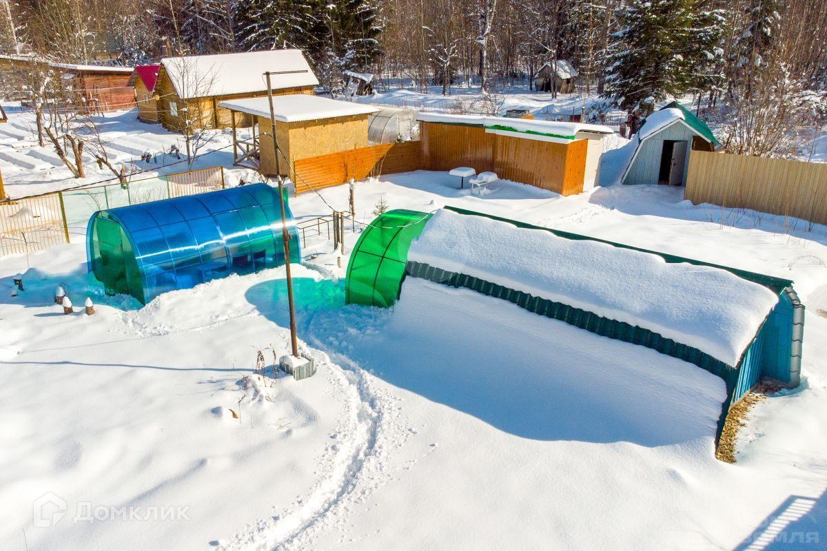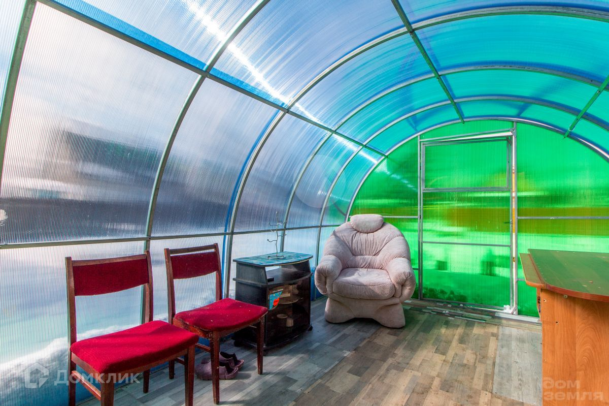 Дом стоит на монолитном фундаменте. Стены, они же крыша, на сваях. Утепление 150 мм. Крыша - металлочерепица. Внутренняя отделка - современные материалы. У домика есть открытая прихожая - секция с цветным поликарбонатом.