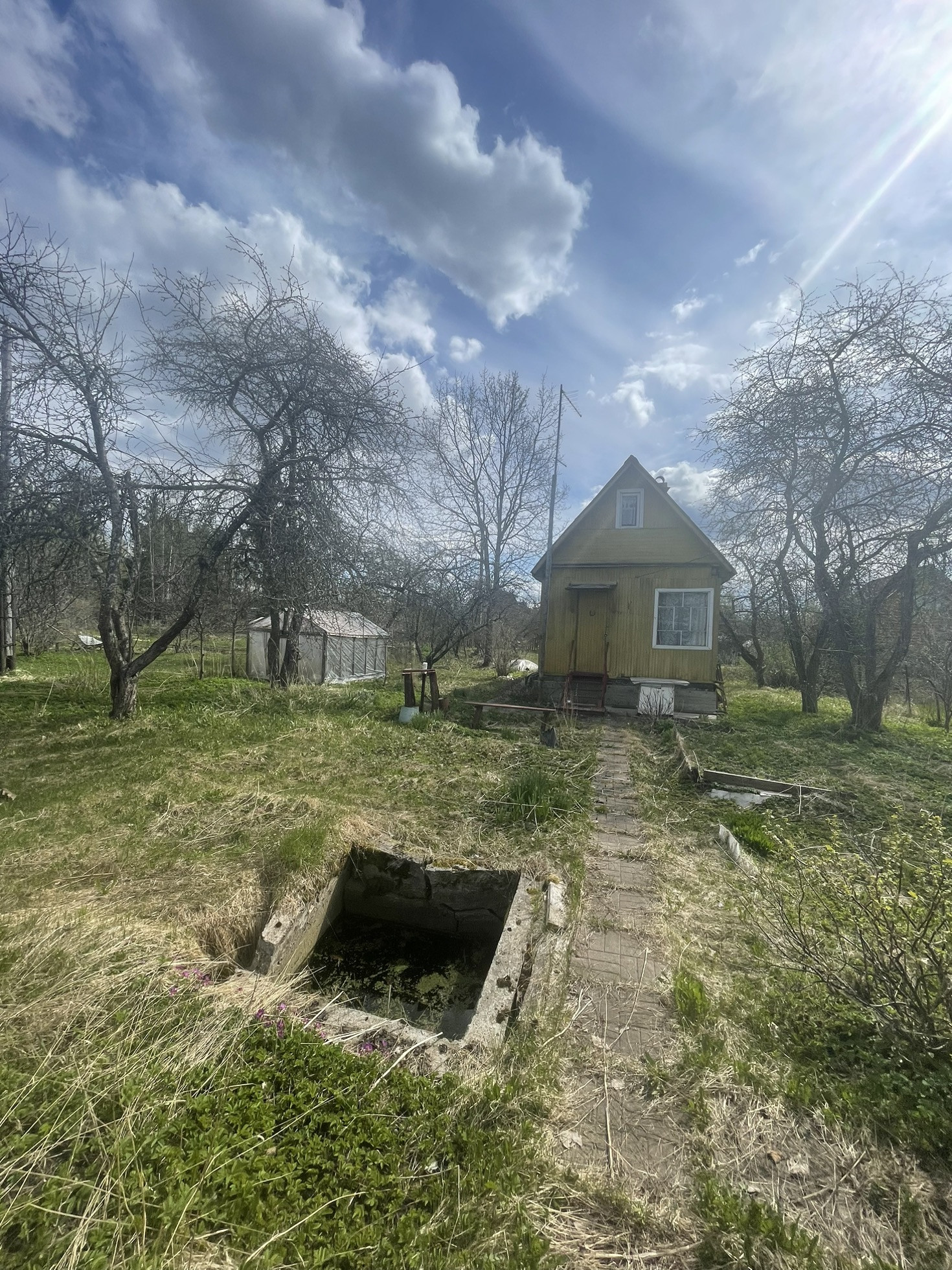 Дом нежилое строение без права регистрации на садовом участке 6 стоит. Есть колодец, туалет, сарай, теплицы . На участке плодовые деревья и кусты.Участок отмежеван.