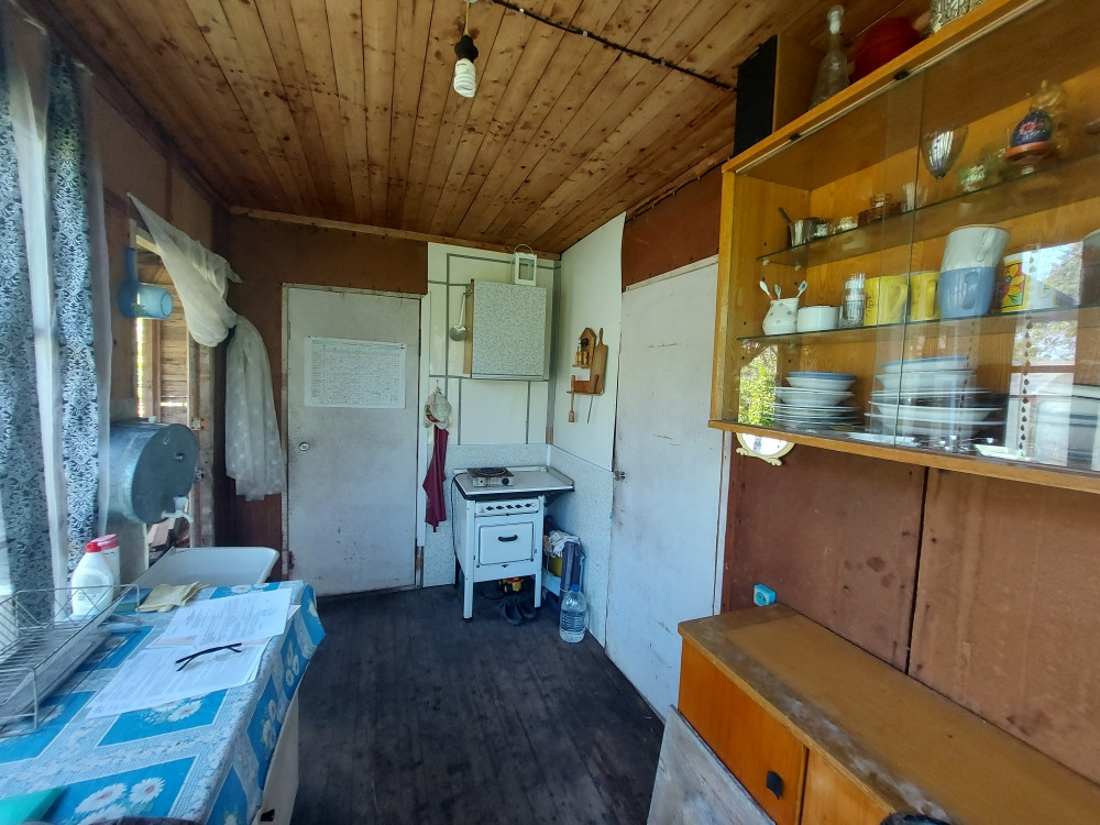 Участок 6,3 сотки, с двух сторон огорожен сеткой-рабицей, на участок сделан заезд для автомобиля, проложена труба. Участок расположен в современном охраняемом садоводстве, в 20 минутах ходьбы до центра и рынка.  На участке из насаждений: ягодные кусты, яблони, сливы, клубника. На участке: дом; каркас теплицы; туалет.
